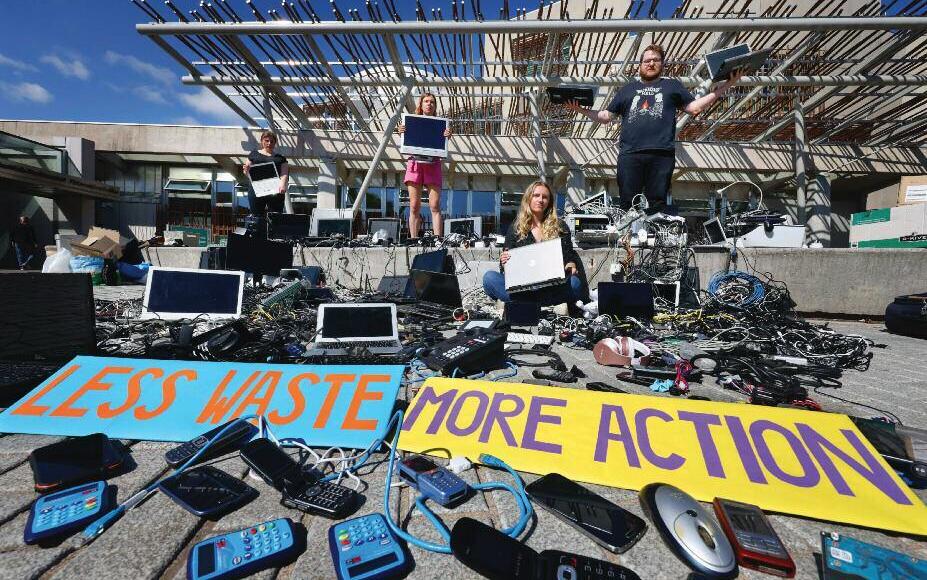 We made sure MSPs understood the impact of our material consumption by staging a circular economy fashion show right outside the Scottish Parliament and piling electronic waste at their door.