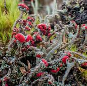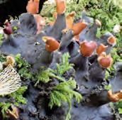 There are a bewildering variety of Cladonia lichens: those with cups and red fruiting bodies are very attractive to beginners. They can, however, be very hard to tell apart.
