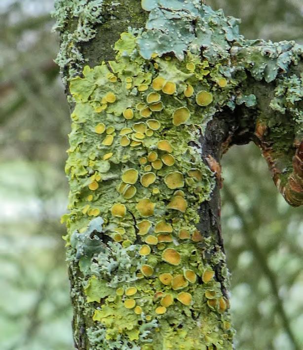 Lichens are not single organisms like a robin or daffodil, but stable communities involving a fungus and an alga (or cyanobacteria, ‘blue green alga’). Recent research suggests there are bacteria and yeasts too. The fungus provides ‘structure’; the alga makes sugars (food). Lichens provide texture on trees, rocks and walls. They are beautiful, fascinating and enigmatic, and found almost everywhere.