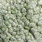 Or the lichen may reproduce asexually by producing Soredia (below left) – a powder containing both alga and fungus, or Isidia (below right) – little peg-like outgrowths.