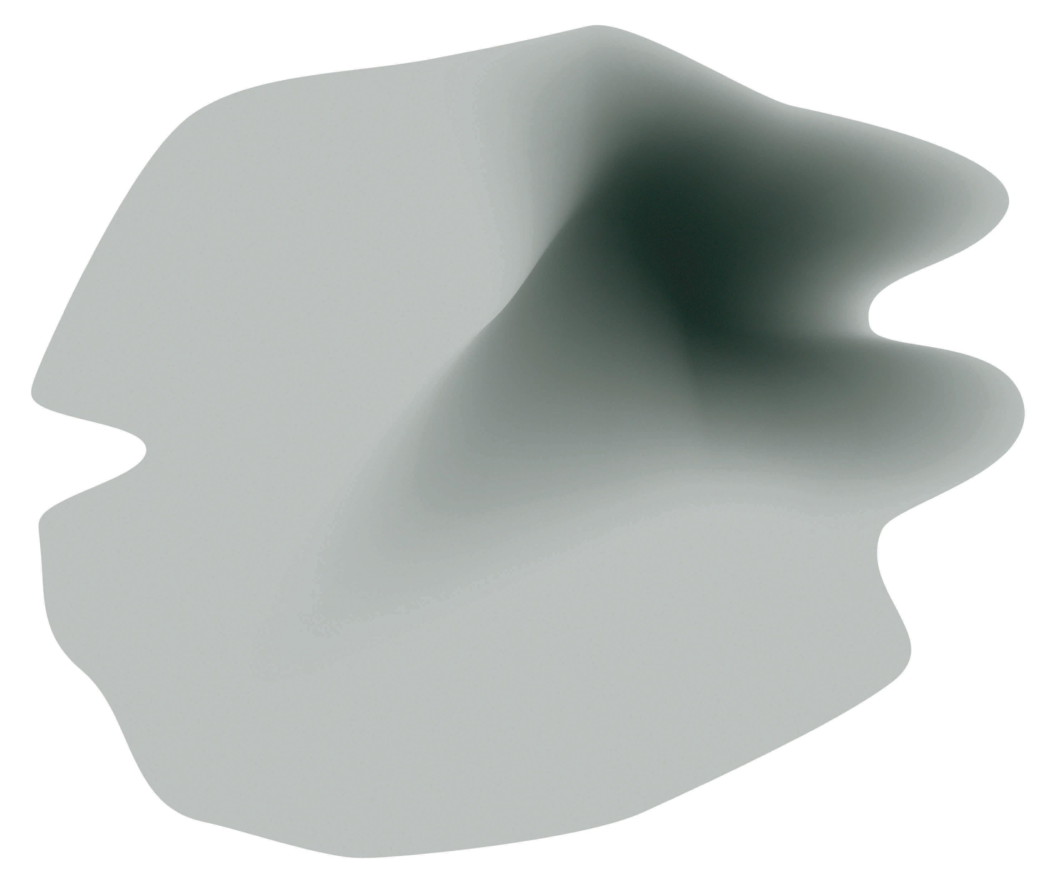 However, not all works are detached from their origins. The metal beams repurposed into a fountain and a long, flat bench still bear the designation ‘FARGH’, the manufacturer of the crane from which they originated. The triangular structure of FARGH fountain (2025), its welded lines clearly displayed, forms a shallow water basin that features an electronically operated water flow. FARGH bench (2025), meanwhile, faces the room like a vantage