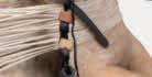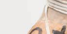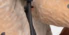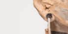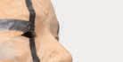 Surrounding the two figures, earthenware jugs hang on the walls in Atrophy Room (2015) – though at first they are barely noticeable, their dark hues camouflaged against the stained concrete. Each jug bears a pair of sagging, desiccated breasts. It’s a grim parody of the trophy room, a space meant to display conquests transformed here into a shrivelled chamber of ageing and decay.