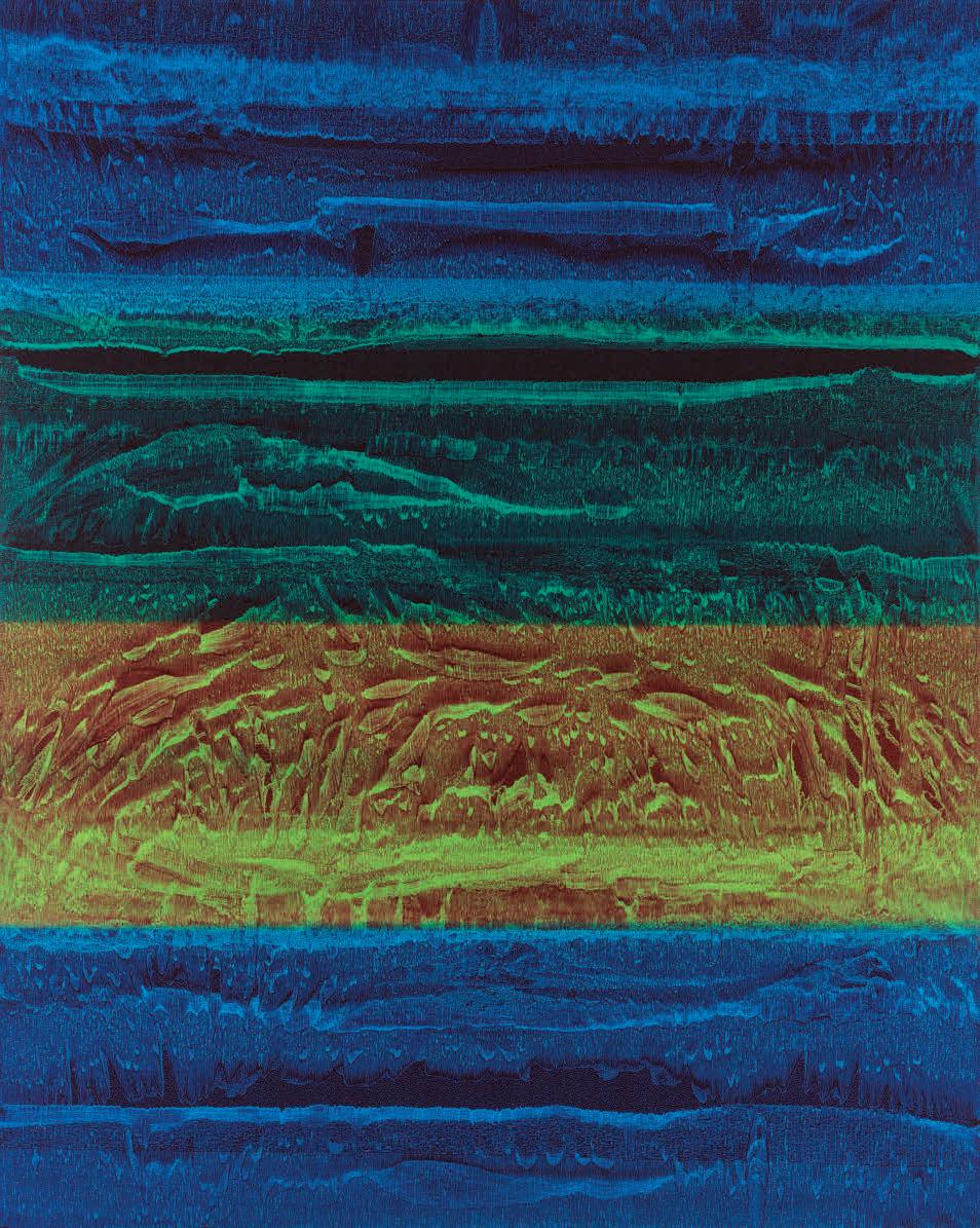 The exhibition’s excellent design, by TheGreenEyl, draws inspiration from Max Bill’s Hommage à Picasso (Homage to Picasso, 1972), a work in the museum’s collection that features nested squares divided into fields of black and bold colour. A temporary black-box space in the gallery’s centre hosts installations by Sarah Meyohas and the duo Operator (Ania Catherine and Dejha Ti), leaving triangular areas around the periphery for thematic groupings. Half of the exhibition showcases artists who use generative methods to translate visual and tactile experiences of the world into digital media, or to simulate natural systems. The other half is devoted to works that highlight the aesthetics and functionality of algorithms. This includes 20th-century works by Sol LeWitt and Anni