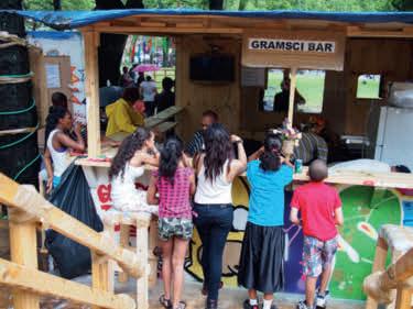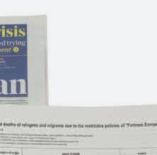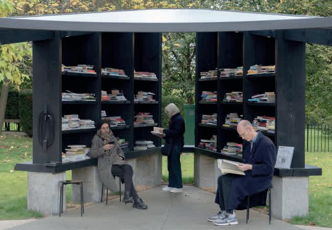 drawings mimicking stapled-up posters. Among them are drawings of flyers for pro-Palestine and pro-Ukraine rallies, antimass tourism and anti-eviction campaigns in Barcelona and a #BlackLivesMatter event, as well as an anti-capitalist graphic from the 2001 G8 summit in Genoa and a Women’s Day march poster from 1970s London. The possible real-world counterparts of this exhibition urbanism, Carbotta suggests, might be litterers, lawbreakers or pests as much as friendly neighbours, adventurous kids or fellow dissenters, all getting by through the kind of life-sized messiness that resists polished ‘creative city’ master plans.