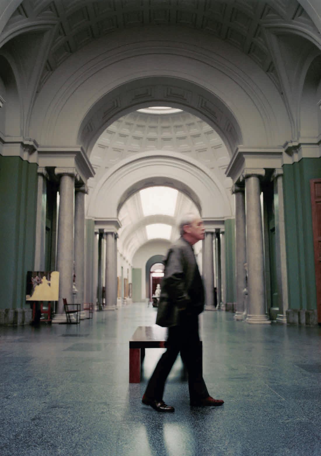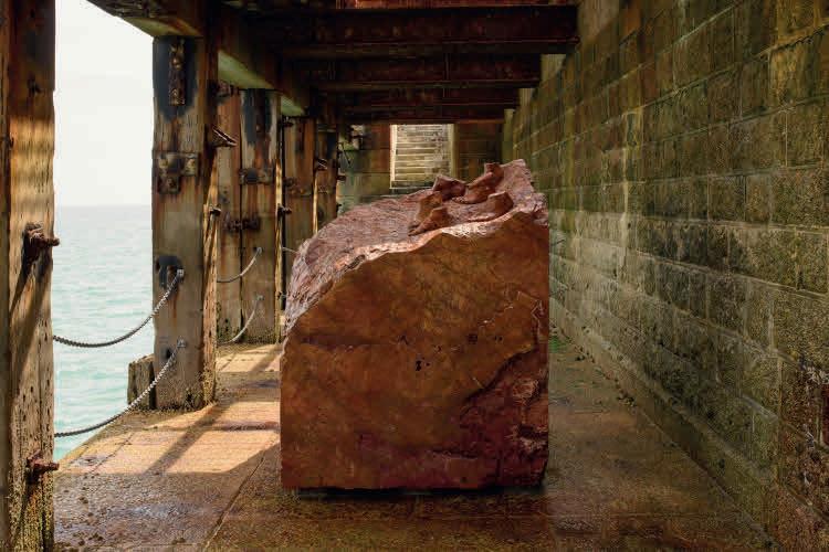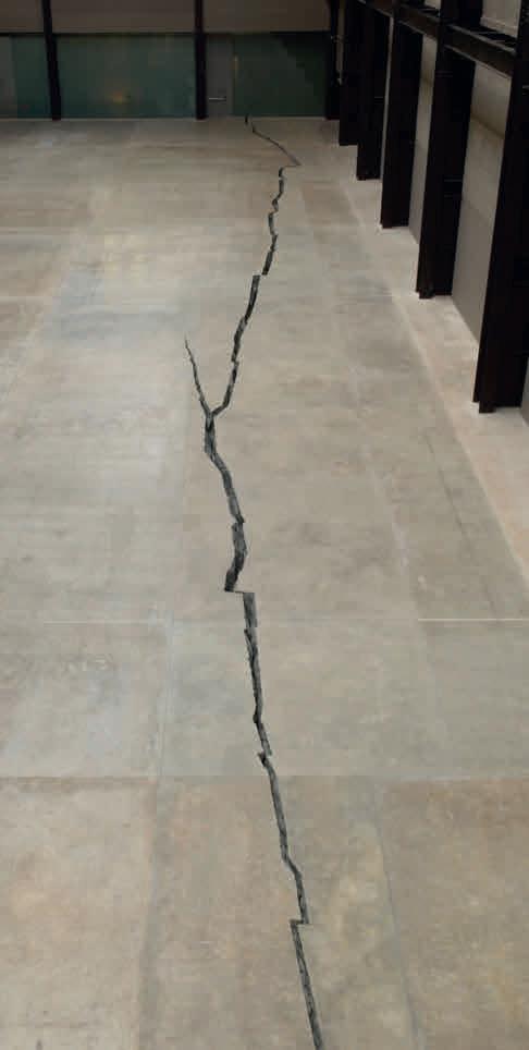 point, inviting visitors to take a seat –even if it is a tad too high and cold to be comfortable. The faint smell of oil lingering in the room, together with the fountain’s splashing, breaks up the sterility of the museum environment and subtly reminds us of the objects’ industrial past.