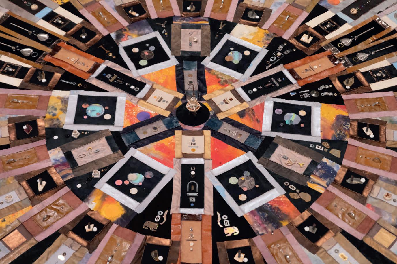 Margherita Raso, Studio (detail), 2024, iron, screws, football pads, 233 × 346 × 3 cm