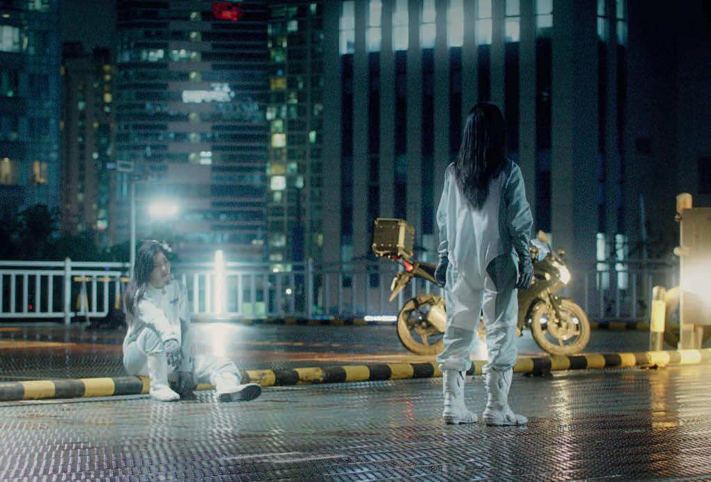 in disorienting dance marathon tournaments at a hotel which morphs into cell, nightclub, courtroom and beating heart. Both construct spaces that feel like feverish hybrids of spectacle and confinement, their protagonists locked in an endless pursuit of pleasure, endurance and transformation, never quite reaching an end point. What feels different here is the overt entanglement with bureaucracy, the surreal internalization of its logic – or lack thereof – and the dissolution of identity under the weight of endless process.