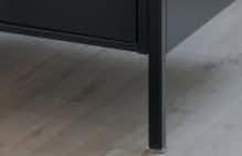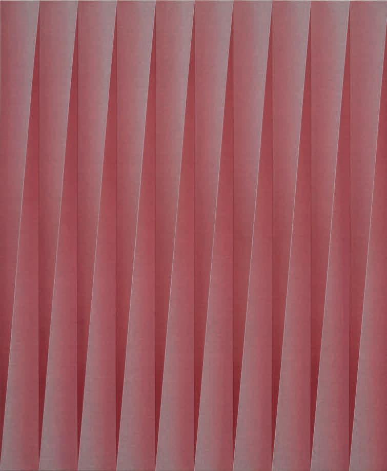 The show’s proximity to the art world is evident through numerous citations. Untitled (Nude Descending a Staircase) (2025), which borrows its title and form from Marcel Duchamp’s famous 1912 painting, features strips of steel sheeting that extend out from the gallery wall in energetic bends and curves. Similarly, Untitled (monolith) (2019) channels the mysterious black slabs of Arthur C. Clarke’s ‘Space Odyssey’ series (1968–97), reimagined here as an elongated black wall relief of offset aluminium pieces. Even the exhibition title evokes a cultural signpost: Madonna’s eponymous 1984 anthem. These titles, icons and pop culture cues are not quoted ironically but are purposefully folded back into Overton’s system of reuse. However, where some references resonate immediately, others remain opaque, and without explanation they risk collapsing into mere formal gestures. The exhibition handout partly fills this gap, but in the absence of wall texts, the information arrives as an afterthought for visitors willing to read further.