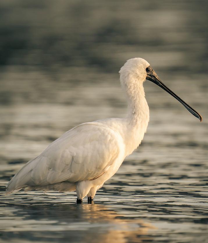 In flight, with their neck outstretched and legs trailing behind, spoonbills look rather awkward, like a Dr Seuss cartoon bird, made more comical by their intriguing black spoon-shaped bill.
