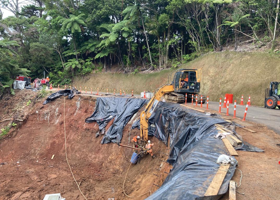 Meanwhile AT is continuing to work on other slips in our area. Work on the Scenic Drive slips that have closed the road between Arataki and Waiatarua is continuing. The site has been challenging with poor ground conditions, and additional rain since AT began work has meant a revised design was required. AT is now building the working platform from which it will be able to work to install the piles (or long beams.) AT is also undertaking important storm water culvert upgrades. This work was expected take up to four months to complete. A completion date is yet to be confirmed.