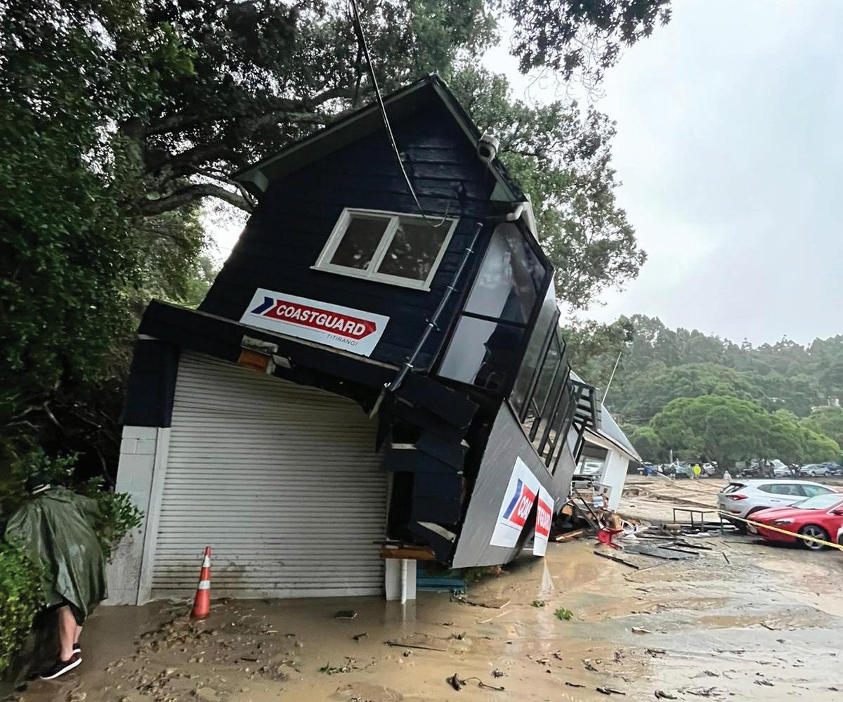 A landslip took out the Coastguard building, sending it crashing onto the road below in a heap of rubble. The attached boatshed, and rescue vessel, were damaged but not destroyed.