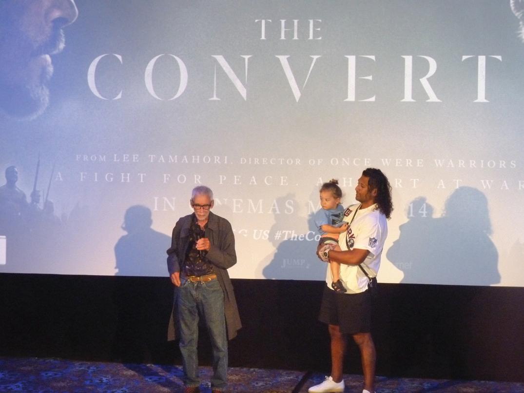 Lee Tamahori is pictured above with producer Te Kohe Tuhaka and his son. The cast and crew is pictured below.