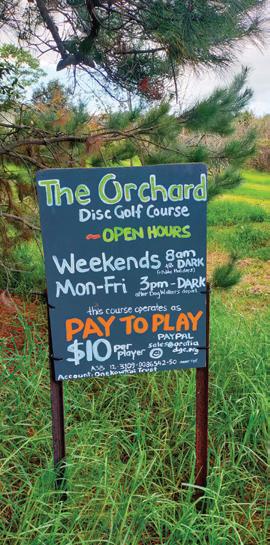 The Orchard has annual or monthly subscriptions, or payment by day or by round (https://udisc.com/courses/ oratia-orchard-disc-golf-course-0zTj) and players have to be members, or accompanying a member when on the course.