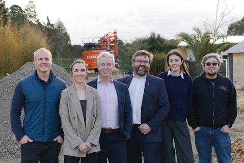 Breaking ground at the building site (70–74 Hilling St, Tītīrangi) with board members Sam Crookes, Lara Collier, Tristan O’Hanlon, Ben Himme, Ella Philp and Jonathan Rogers.