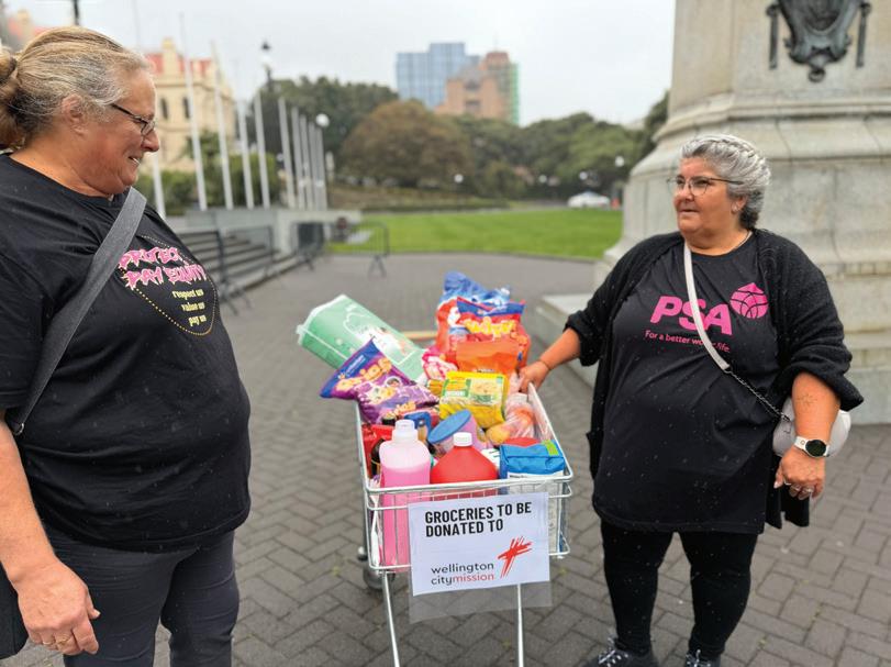 A PSA protest outside parliament on International Women's Day featured a grocery trolley containing $300 worth of essentials, demonstrating how much care and support workers are missing out on every fortnight because their pay equity claim was cancelled.