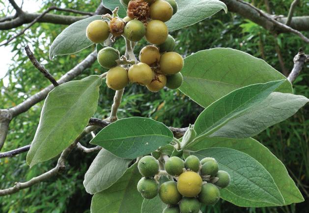 Quickly forms dense stands that prevent native plants from growing. Small shrubs grow into large trees with furry grey/green leaves, purple flowers and green fruit turning yellow when ripe. Dig or pull out small plants or cut and paste large trees with herbicide. Remove seeds and dispose of in community weed bins.