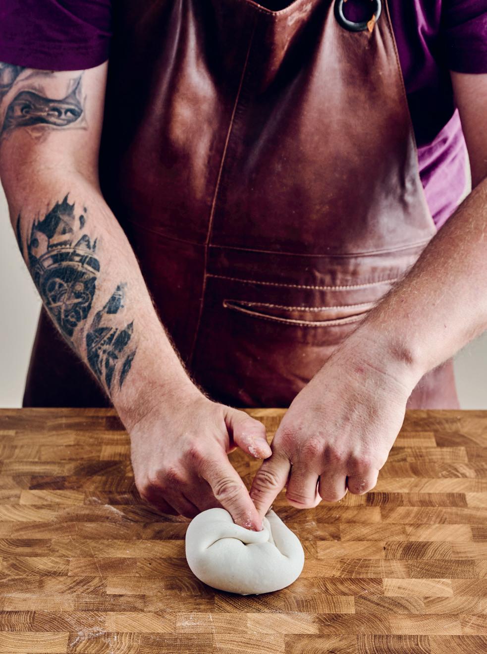 Når du kutter opp og veier deigen, må du la den siden som er «tett» og ligger opp, også bli den siden som ligger opp når du skal brette ballene.