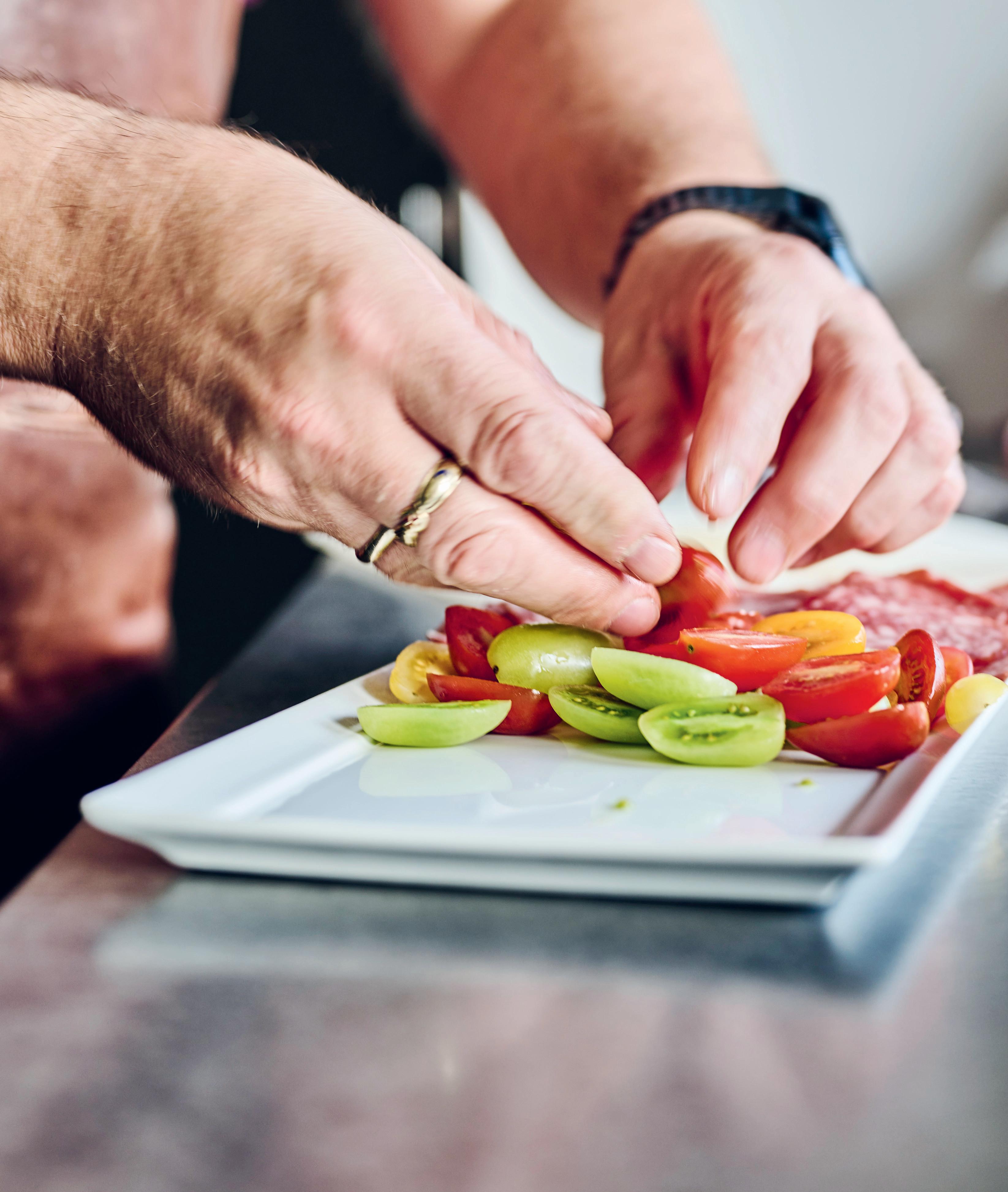 • Hermetiske pomodori cherrytomater • Fersk mozzarella • Friske basilikumblader 7 OPPSKRIFTER 142 PERFEKT PIZZA HJEMMEPIZZAMANI