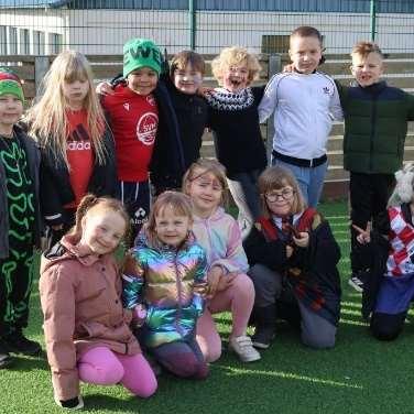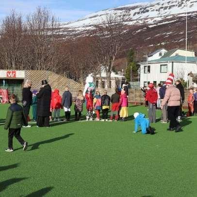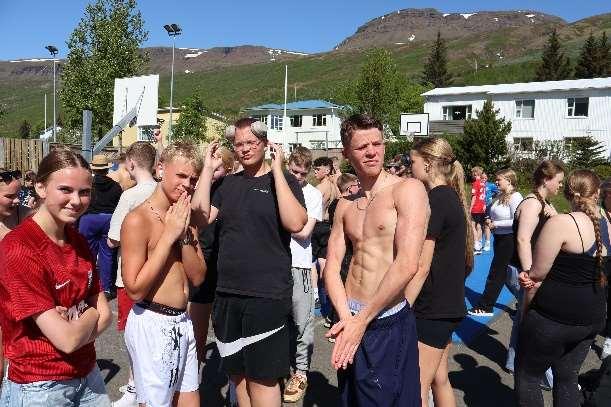 Guðmann kennariá heiðurinn af þessum frábæru myndum semsýna vel flórunemenda og starfsmanna. Efrimyndin er tekin árið2016 en sú neðri nú á vordögum 2025.