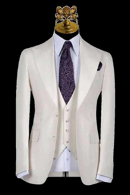 A crisp white suit adds a fresh touch of purity and timeless elegance, perfect for a groom’s daytime winter event.