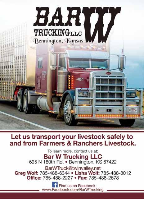page 6 Summer 2022 Register online at KSUBeef.org or 785-532-1267 Registration is $25 by Sept. 15 $35 at the door Join us for the 23rd Annual KSU Beef Stocker Field Day. The program will include the latest practical information to help you make the most of significant changes occurring in the beef industry. We’ll offer management tips to help you optimize your stocker operation and provide greater flexibility in the future. KSU Beef Stocker Field Day Thursday, Sept. 29, 2022 • 9:30 a.m. KSU Beef Stocker Unit • Manhattan, KS For More Information, Contact: Farmers & Ranchers 785-825-0211 Mike Samples • 785-826-7884 Kyle Elwood • 785-493-2901 www.fandrlive.com Farmers & Ranchers Livestock Comm. Co., Inc. Salina, Kansas Your Kansas Connection for Ranch & Rope Horses Come buy your next winter with us October 9! Fall Classic Catalog Horse Sale Saturday, October 8, 10:00 AM Rope Horse Preview Friday, October 7, 6:00 PM 14th Annual F&R Futurity Friday, October 8, 2021, 10:00 AM $14,000 added money 25th Annual Fall Colt & Yearling Catalog Sale Farmers & Ranchers Livestock October 9, 10:00 AM Selling 250 baby colts and yearlings representing great bloodlines like: Smart Chic Olena, Peptoboonsmal, Dash Ta Fame,