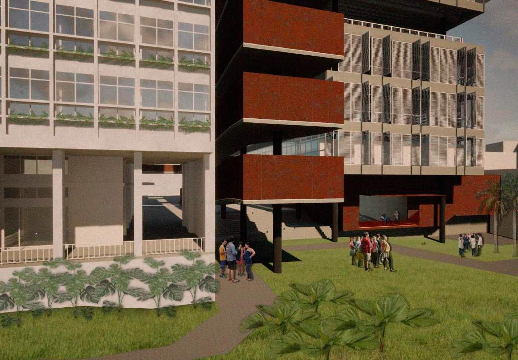 Finalmente, o conjunto edificado, cuja praça no térreo alonga as visuais do entorno, estende o chão público e o multiplica verticalmente, como se observa no pavimento da praça vertical; ao mesmo tempo, não se limitam os usos nos edifícios, uma vez que se permite a plena mutação destes. Desta forma, a qualidade da proposta está para além de suas funções primeiras, mas tem como foco a garantia do conforto à quaisquer atividades que venham a se desenvolver em ambos os edifícios de modo a garantir a permanência da arquitetura.