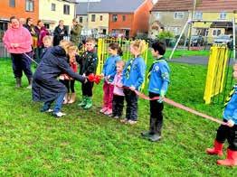 Youngsters from 1st and 2nd Frampton Beavers and Cubs joined in the opening event in Ridings Road, and gave the climbing frame, slide, swings and roundabout a test run.