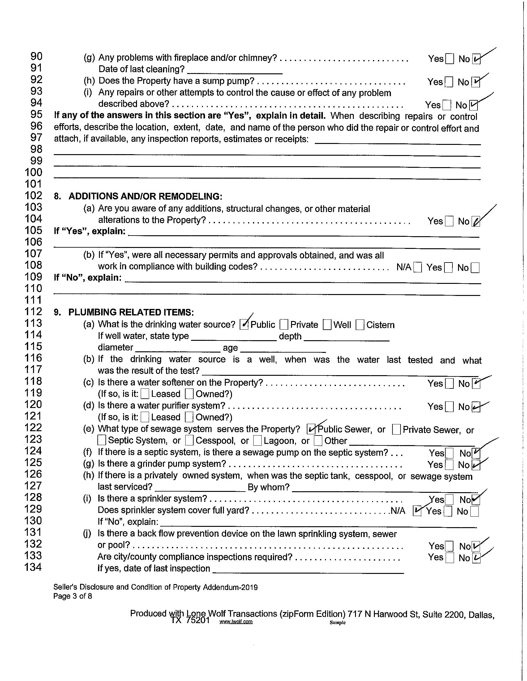 (a) Are you aware of any additions, alterations to the Property? structural changes, or other material