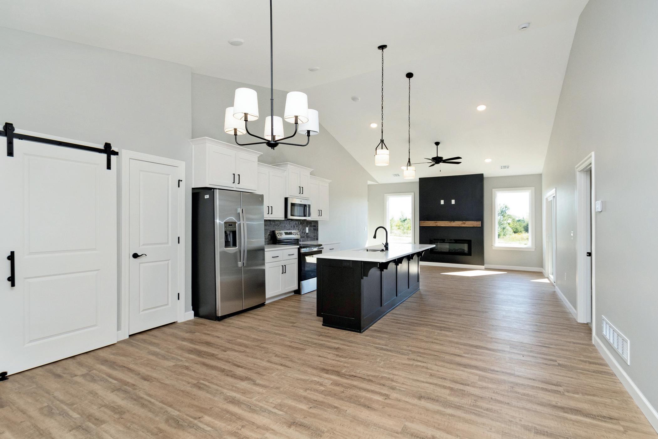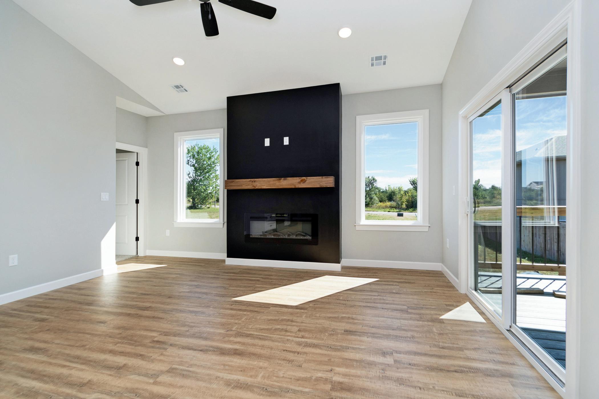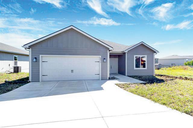 Fully completed new construction with fenced yard, opportunity to purchase NEW construction slab home by Drippe Homes. 4 BR, 2 BA, 2 car garage w/convenient location for QUICK commute to Ft. Riley. Modern exterior, upscale finishes throughout, including floor-to-ceiling focal point w/linear electric fireplace accent wall & wood mantle in living RM anchoring the open floor plan & vaulted ceiling. Large primary suite w/10 ft ceiling bump-up and crown, walk-in tile shower & walk-in closet. Kitchen offers GE brand SS appliances, center island & eating bar, walk-in pantry w/shelving, Quartz countertops, two-tone tuxedo cabinetry, stylish matte black lighting, fixtures, & hardware, tile backsplash, custom boot bench w/cubbies & hooks in laundry, & other inspiring features that come together to create a fully-conceptualized interior design scheme paired w/perfected floor plan created by experts from Drippe Homes design team. Covered composite back deck. Safe room/storm shelter in garage.