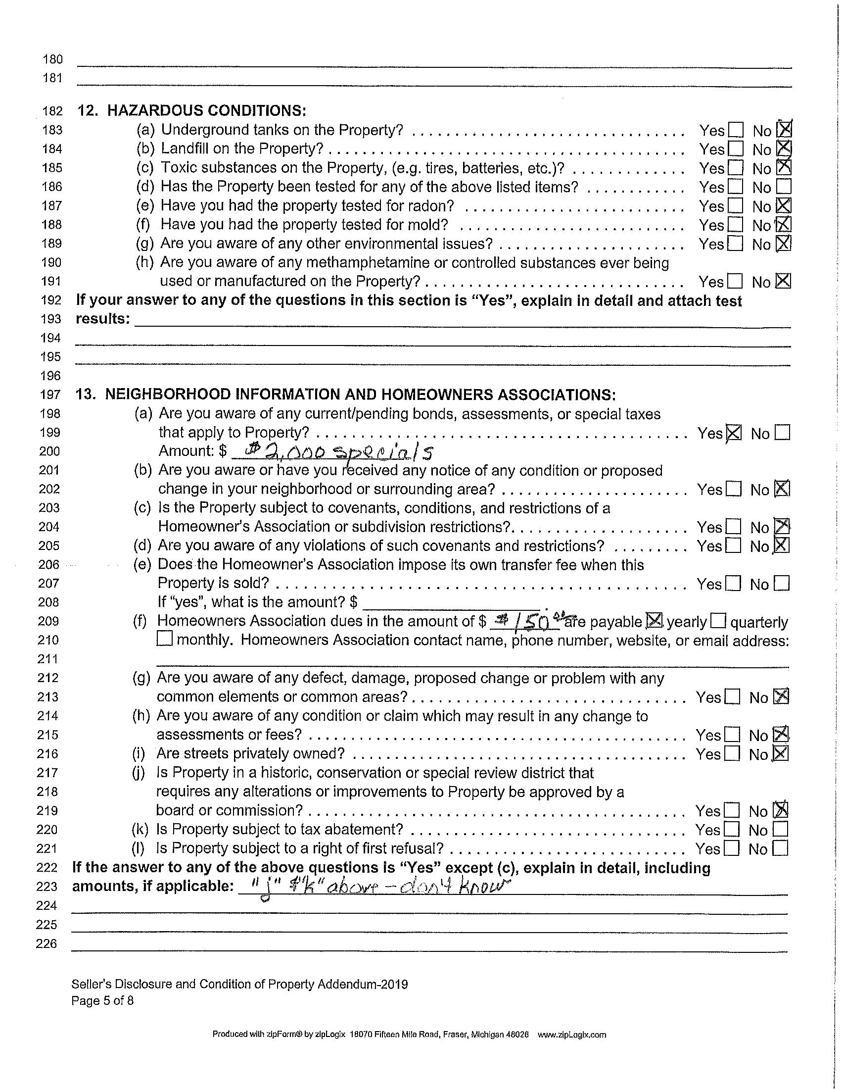 (i) Drainage or flood problems on the Property or adjacent properties? (j) Are the boundaries of the Property marked in any way?