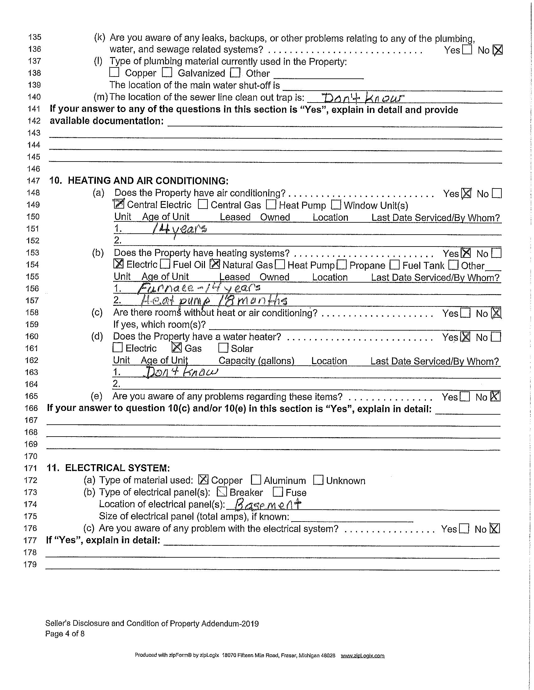 This is a disclosure of SELLER'S knowledge of the Property as of the date signed by SELLER and is not