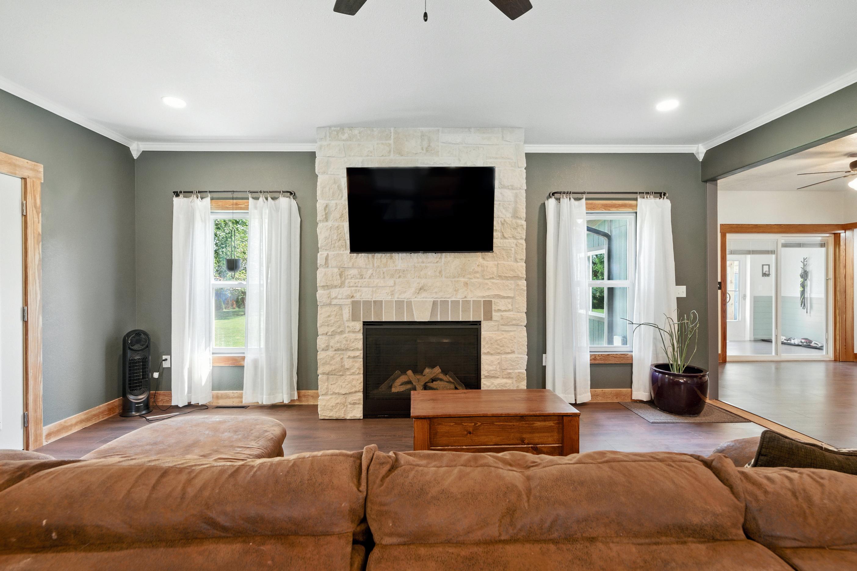 Small-town living meets old farmhouse charm in this fully renovated & expanded home! Classic details like bungalow-style casings, glass knobs & stonework pair beautifully with modern updates including all new windows, plumbing, HVAC updates, electrical, roof & finishes. The chef’s kitchen boasts butcher block counters, dual pantries & new cabinets & appliances, while the open living area features a floor-to-ceiling stone fireplace & abundant natural light. The owner’s suite offers a spa-like bath, walk-in closet & laundry Two more bedrooms & full bath are on the main floor, with 2 additional bedrooms & bath area in the finished lower level. The upstairs attic is finished into a loft with a wired media room. Outdoor living shines with nearly ½ acre, a sprawling deck, outdoor fireplace, covered deck w/media space & detached garage. Enjoy living walking distance to downtown Riley shops, dining, park, pool & school!