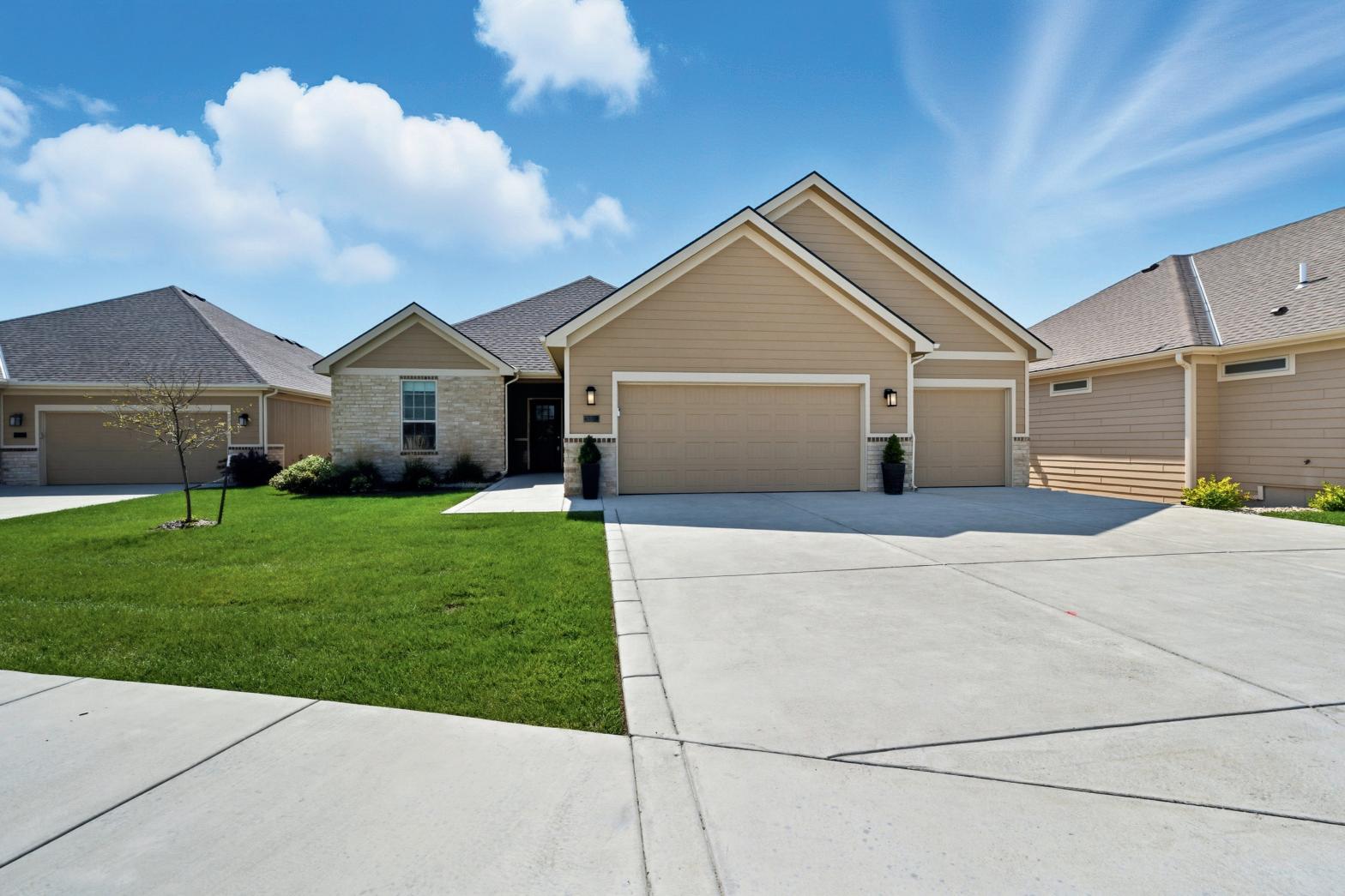 This like-new 4 bedroom home in the Courtyards offers the ease of maintenance-provided living w/a modern, stylish design. Expansive windows fill the interior with natural light & frame long southern views of the Flint Hills towards the Konza Prairie. Just steps away, the 76-acre Roger Schultz Community Park provides a playground & hiking trails. Inside, the home combines sleek clean lines w/character-rich details including accent walls, shiplap, wainscoting, wall moldings & horizontal wood slats.The open layout is ideal for entertaining, featuring a chef’s kitchen w/a 4-burner gas range, vented hood, undercabinet lighting & a spacious pantry, flowing into a dining area that captures impressive views. Outdoor living is equally inviting w/a screened-in deck, lower-level patio, firepit & pizza oven. The owner’s suite boasts a tiled shower, dual vanity, custom closet built-ins & laundry access. This home is the perfect blend of comfort, function & style in a truly stunning setting.