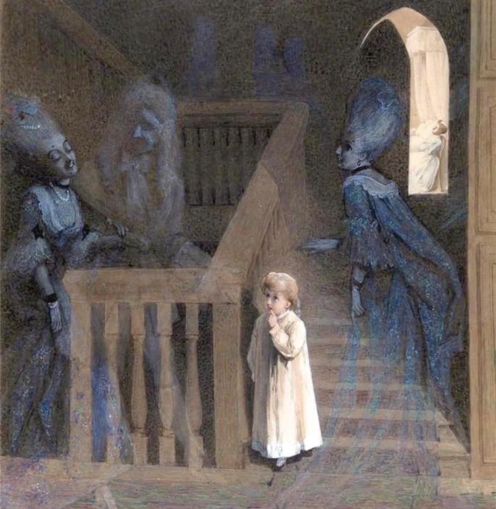 Painting “Party on the Stairs” by Adelaide Claxton