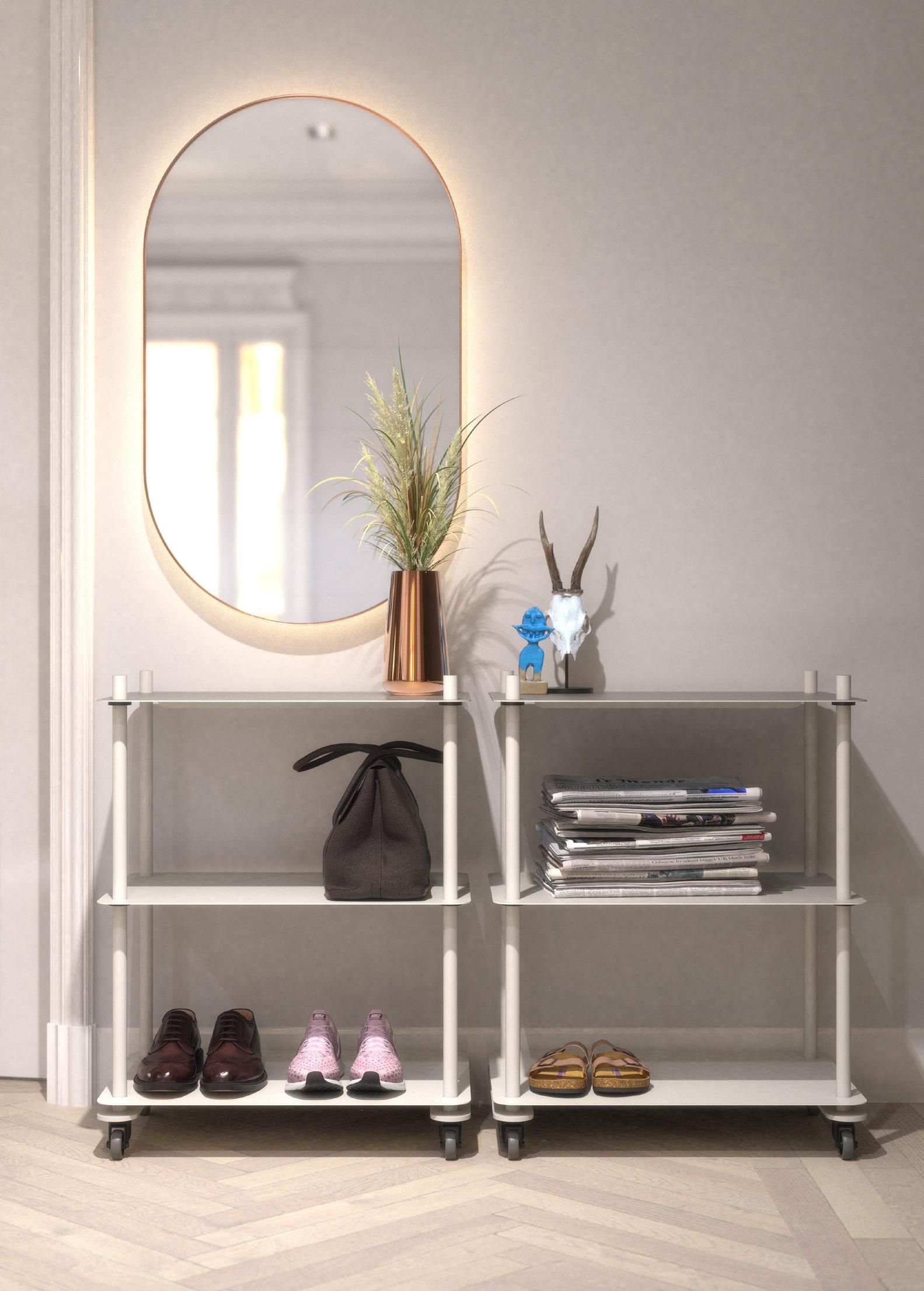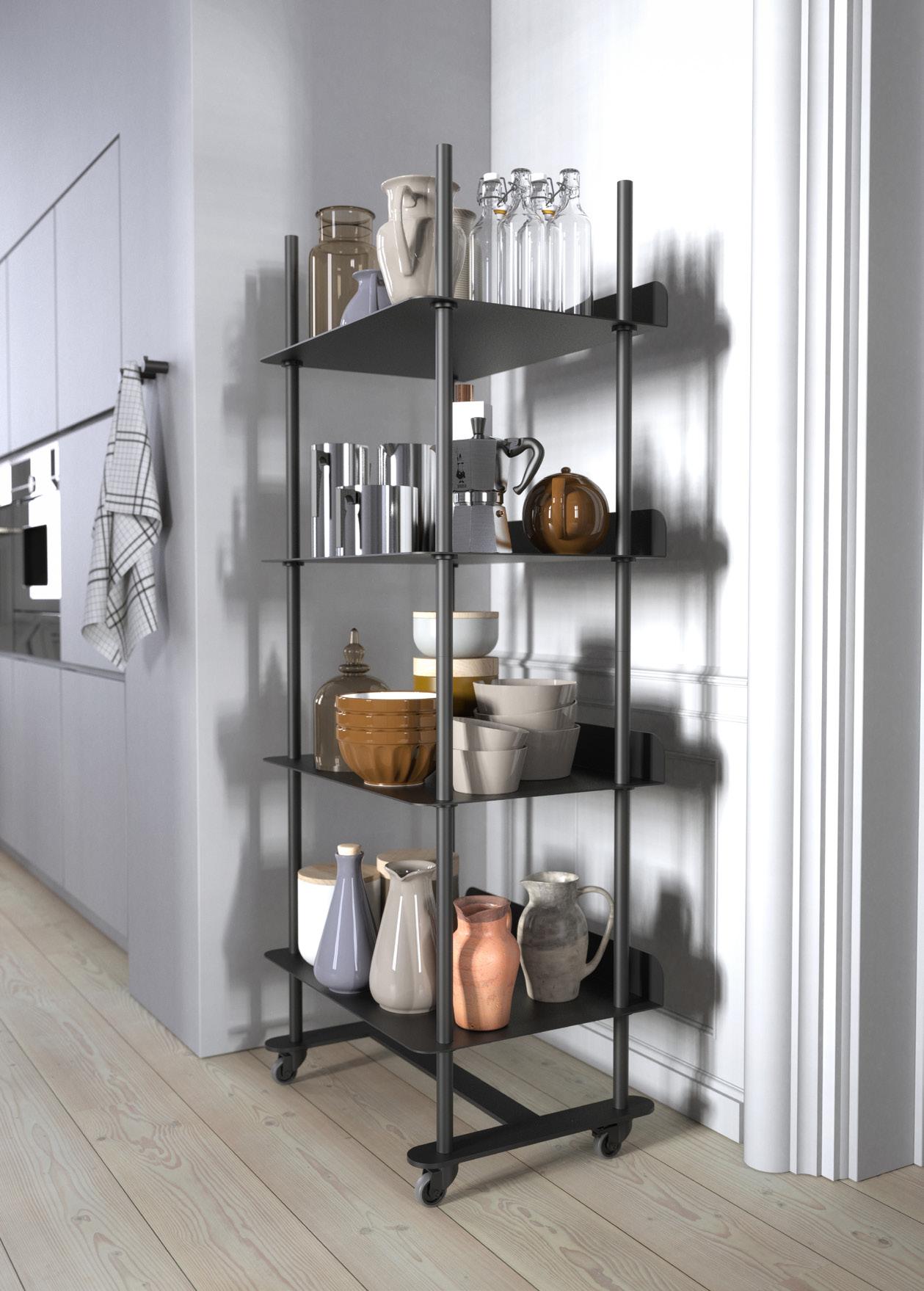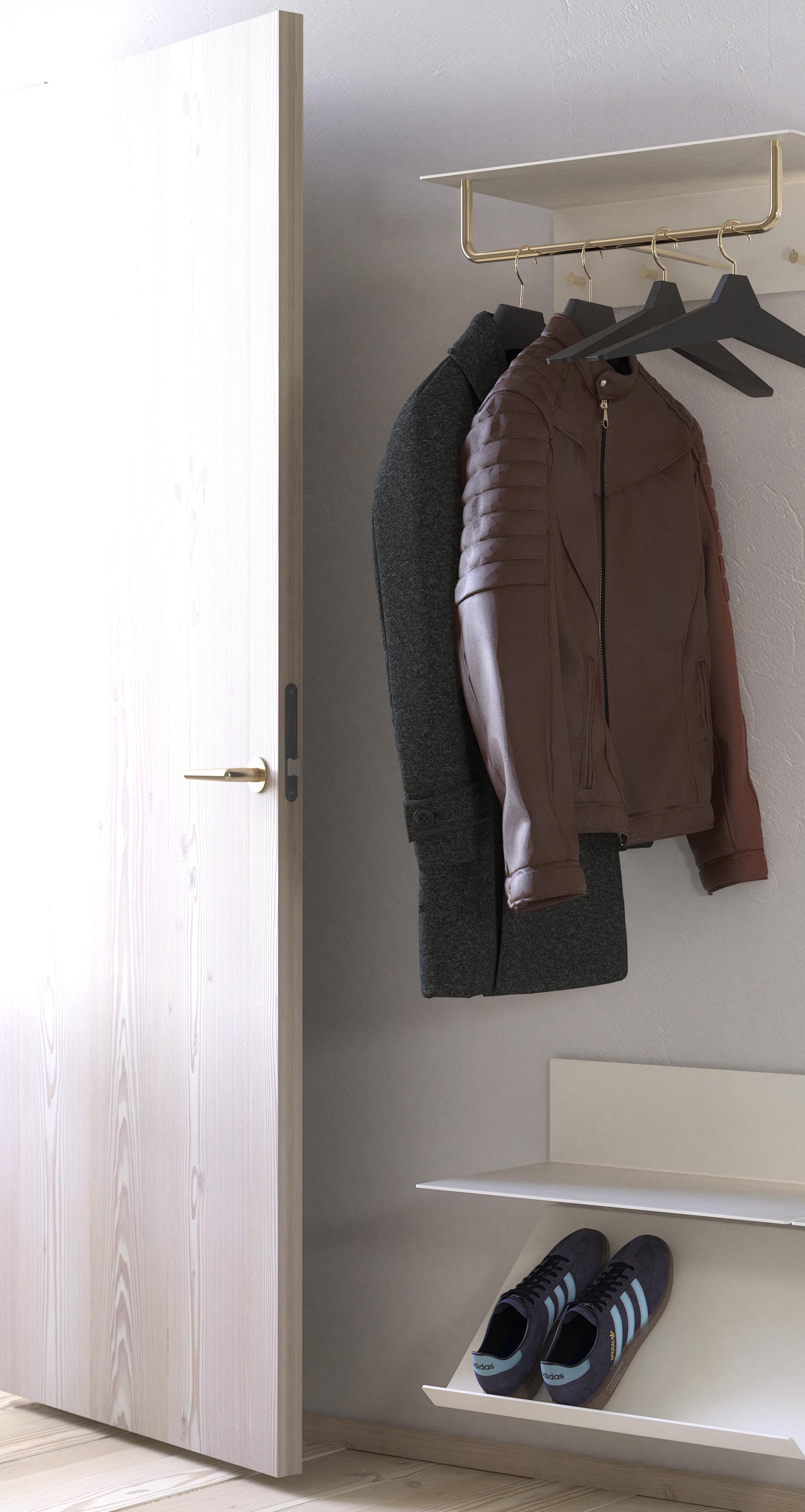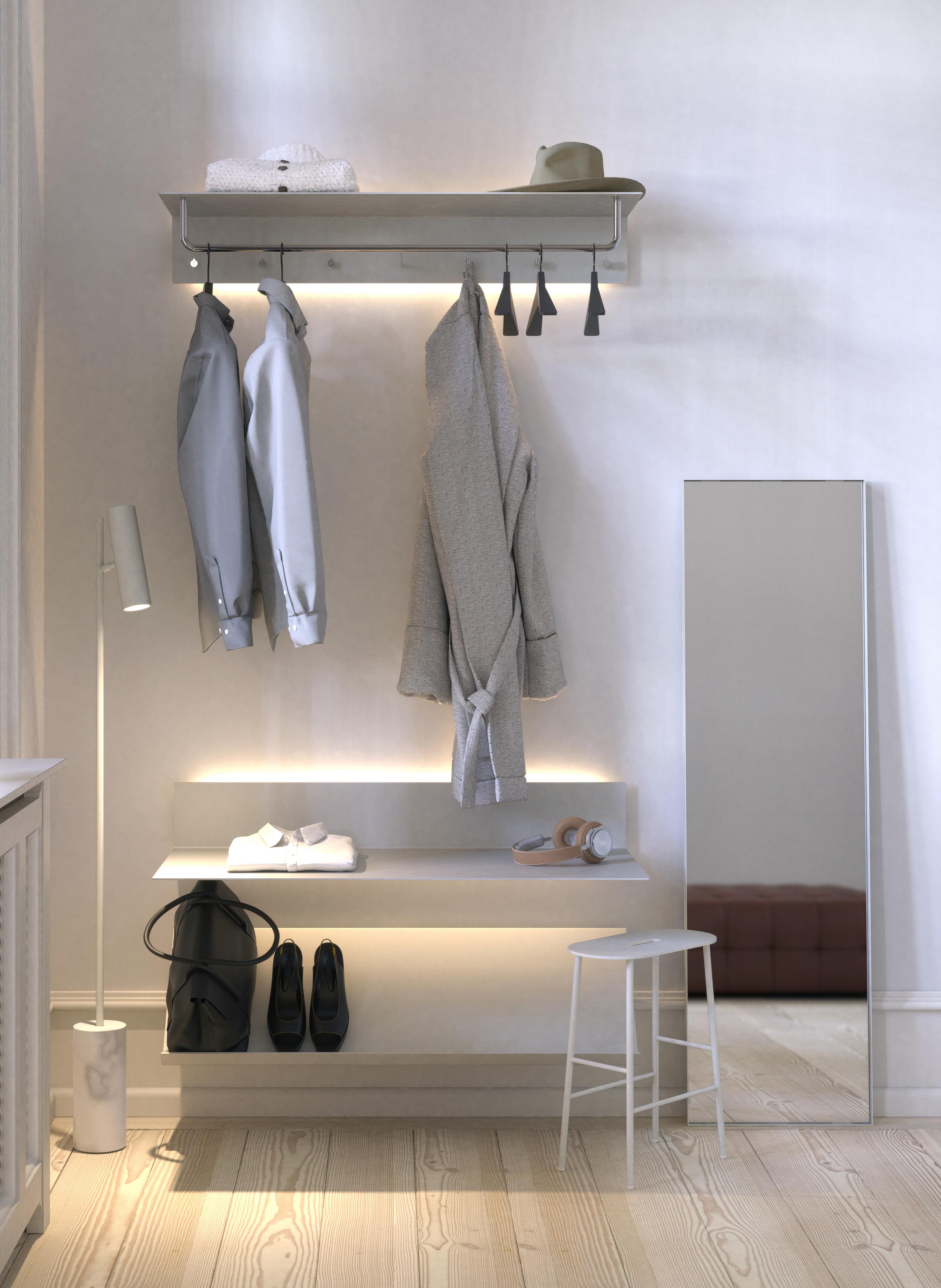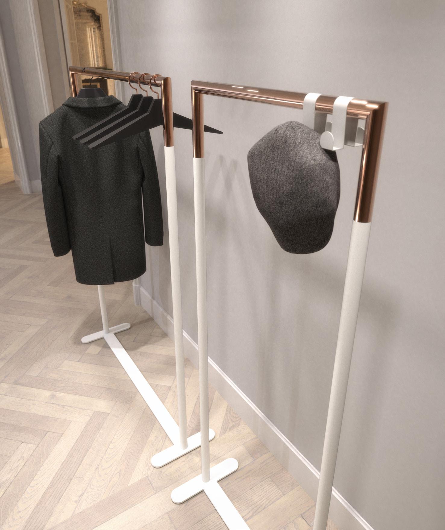 Los percheros BUKTO, un sistema independiente para ropa limpio y elegante, y un sistema Shelf Stand con ubicaciones de estantes integradas sin juntas, todo diseñado con el máximo grado de flexibilidad.