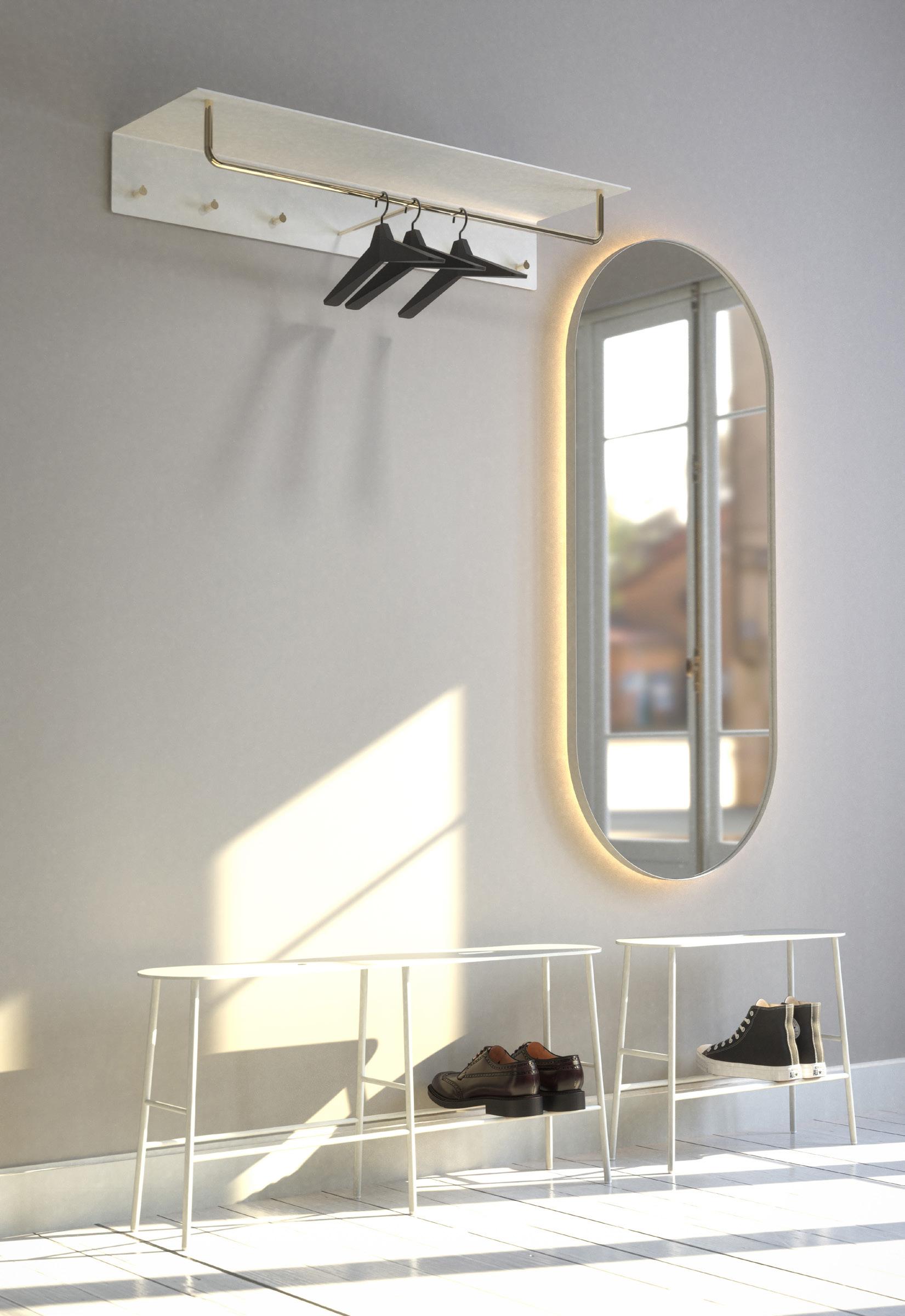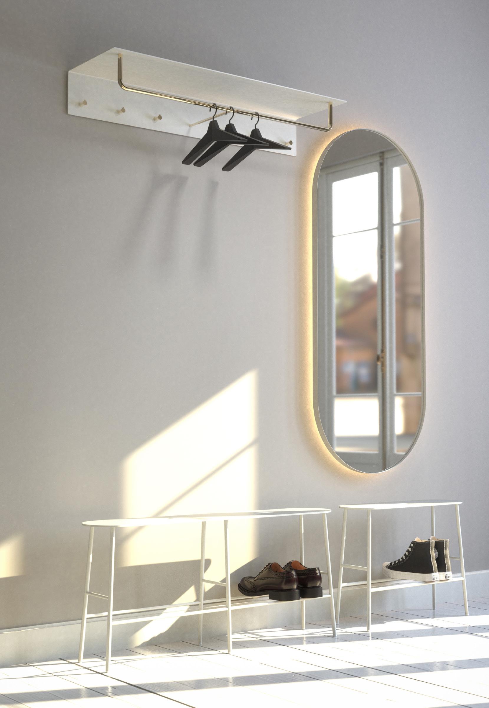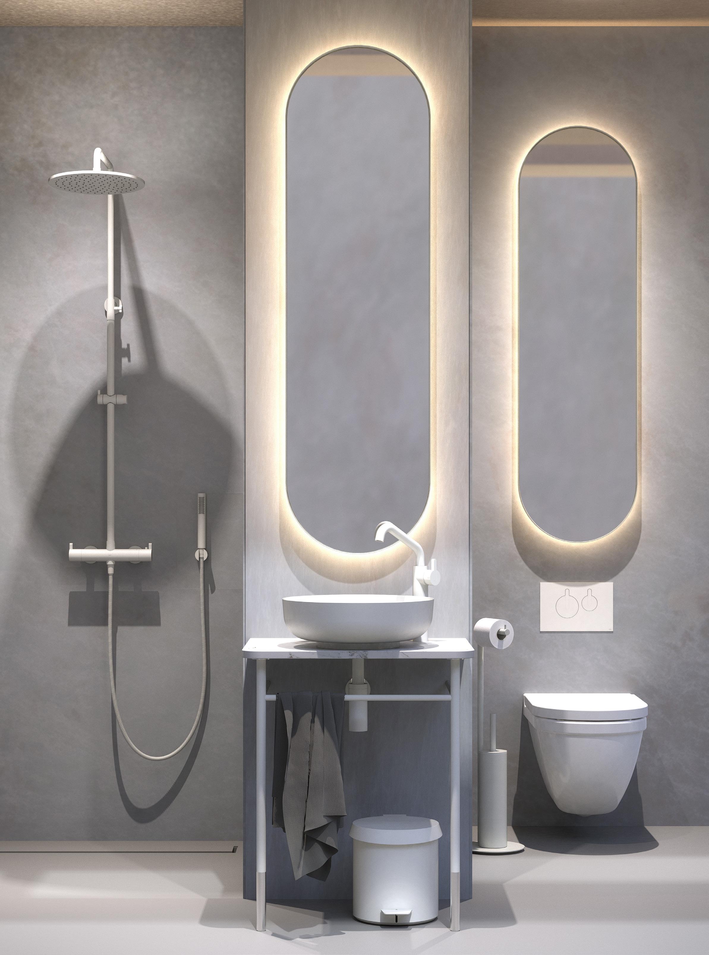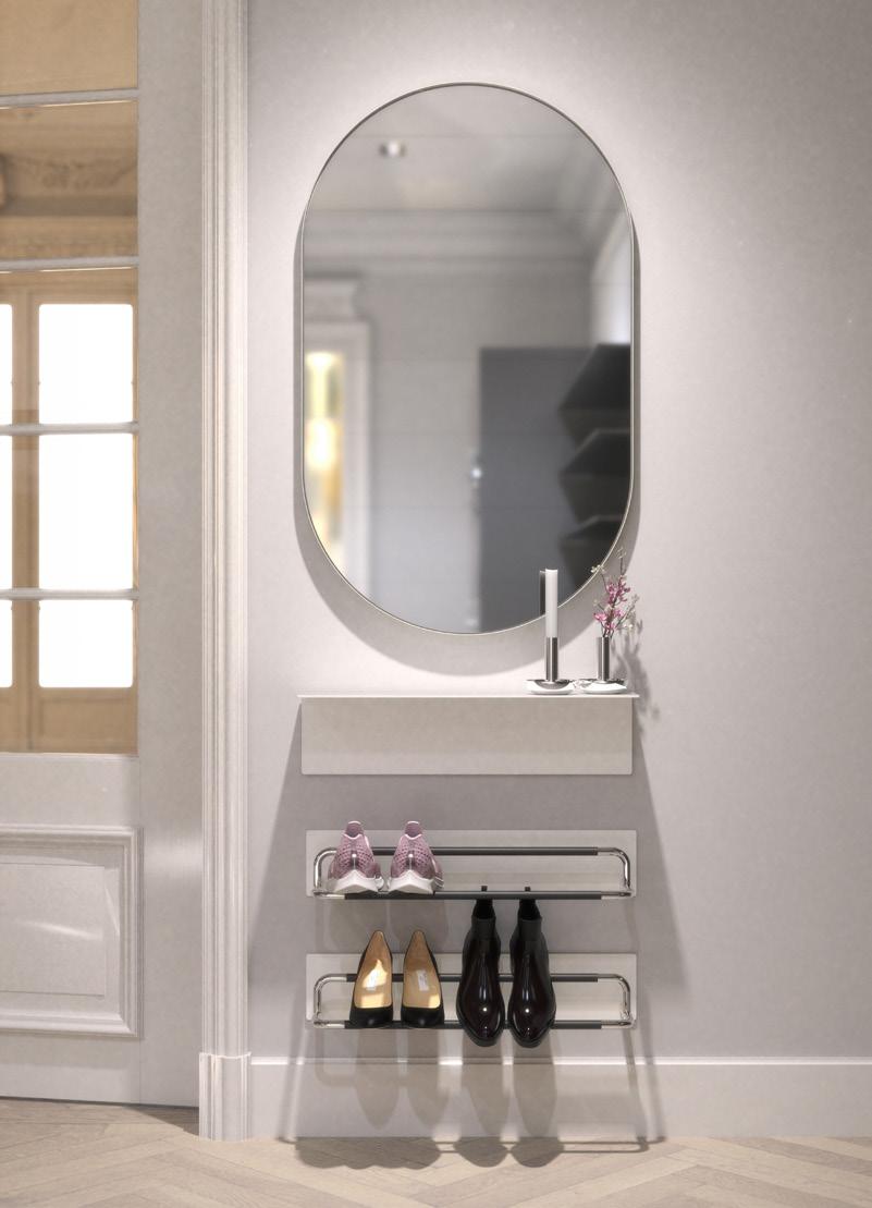 Diseñados para integrarse con elegancia en baños y aseos, pero también en entradas, escaleras y zonas de espera, son ideales tanto para espacios privados como públicos — fácilmente integrables en cualquier interior existente o nuevo.