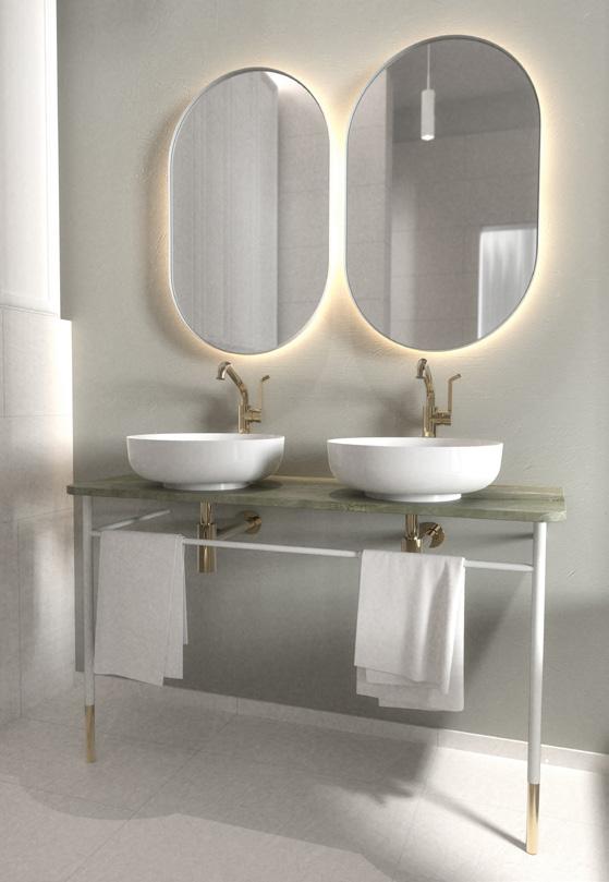 La colección de espejos con retroiluminación incluye modelos redondos, ovalados, rectangulares y cuadrados, además de espejos cosméticos de tamaño compacto.