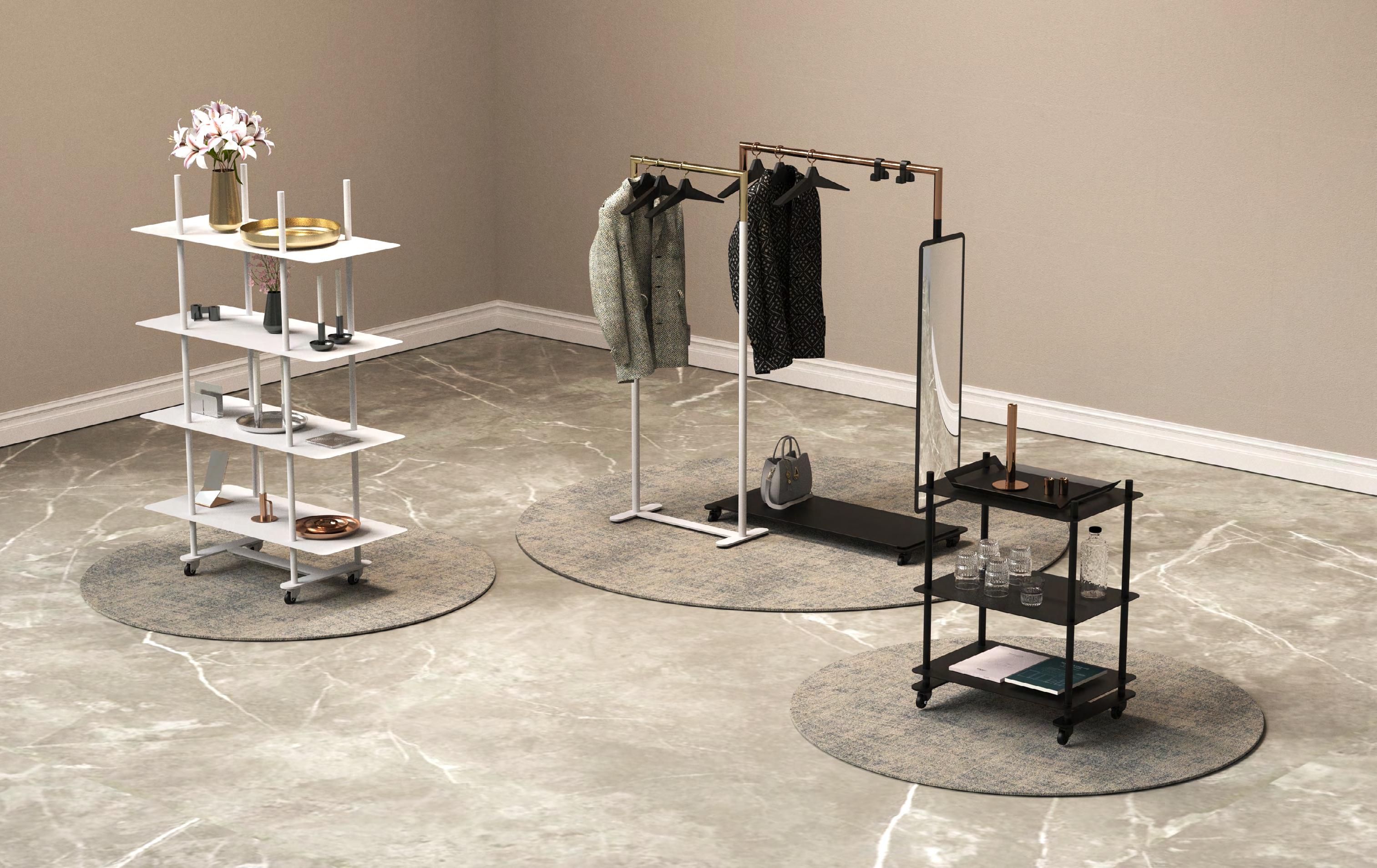 A complete setup to create a cohesive showroom experience. Easily integrated into your existing interior to present a unified interior.