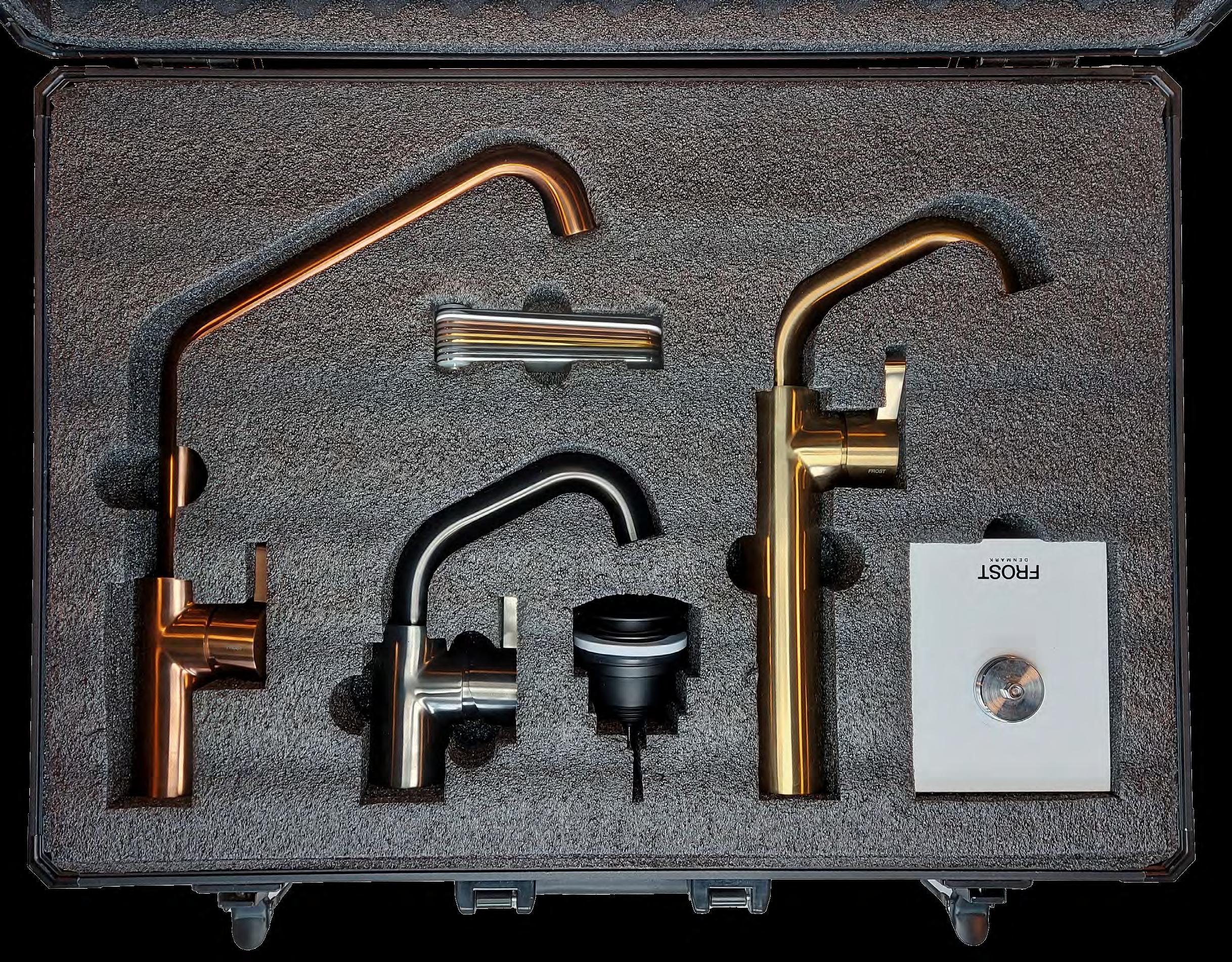 This portable suitcase offers a selection of FROST Mixer Taps, allowing you to showcase the design possibilities and provide a full product experience, no matter where you are.