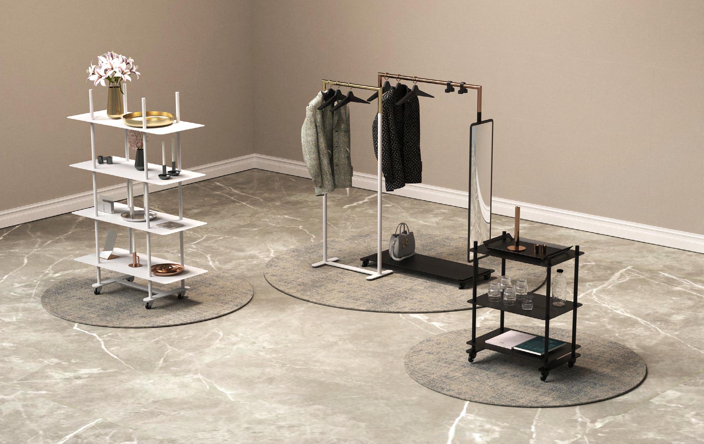 A complete setup to create a cohesive showroom experience. Easily integrated into your existing interior to present a unified interior.
