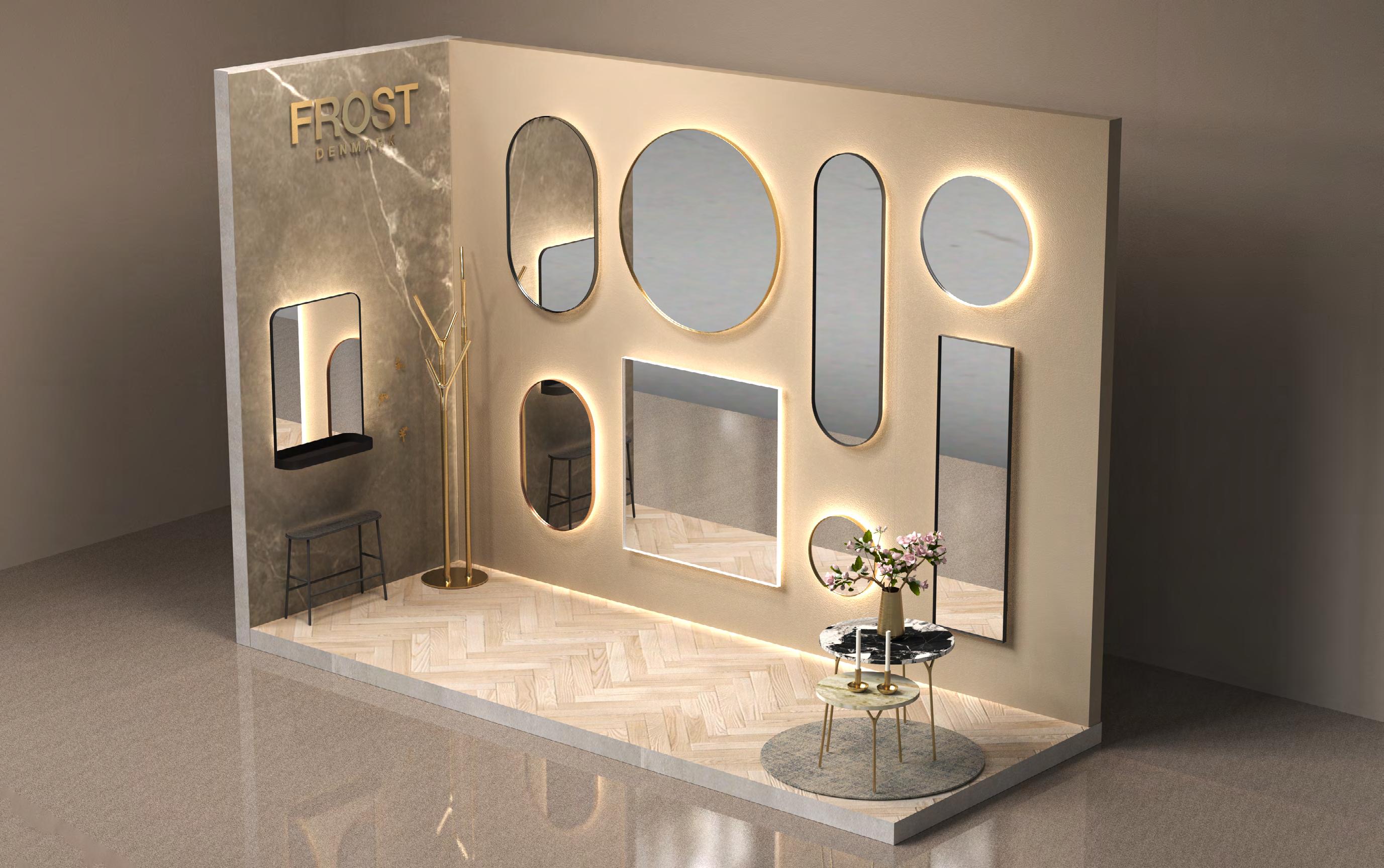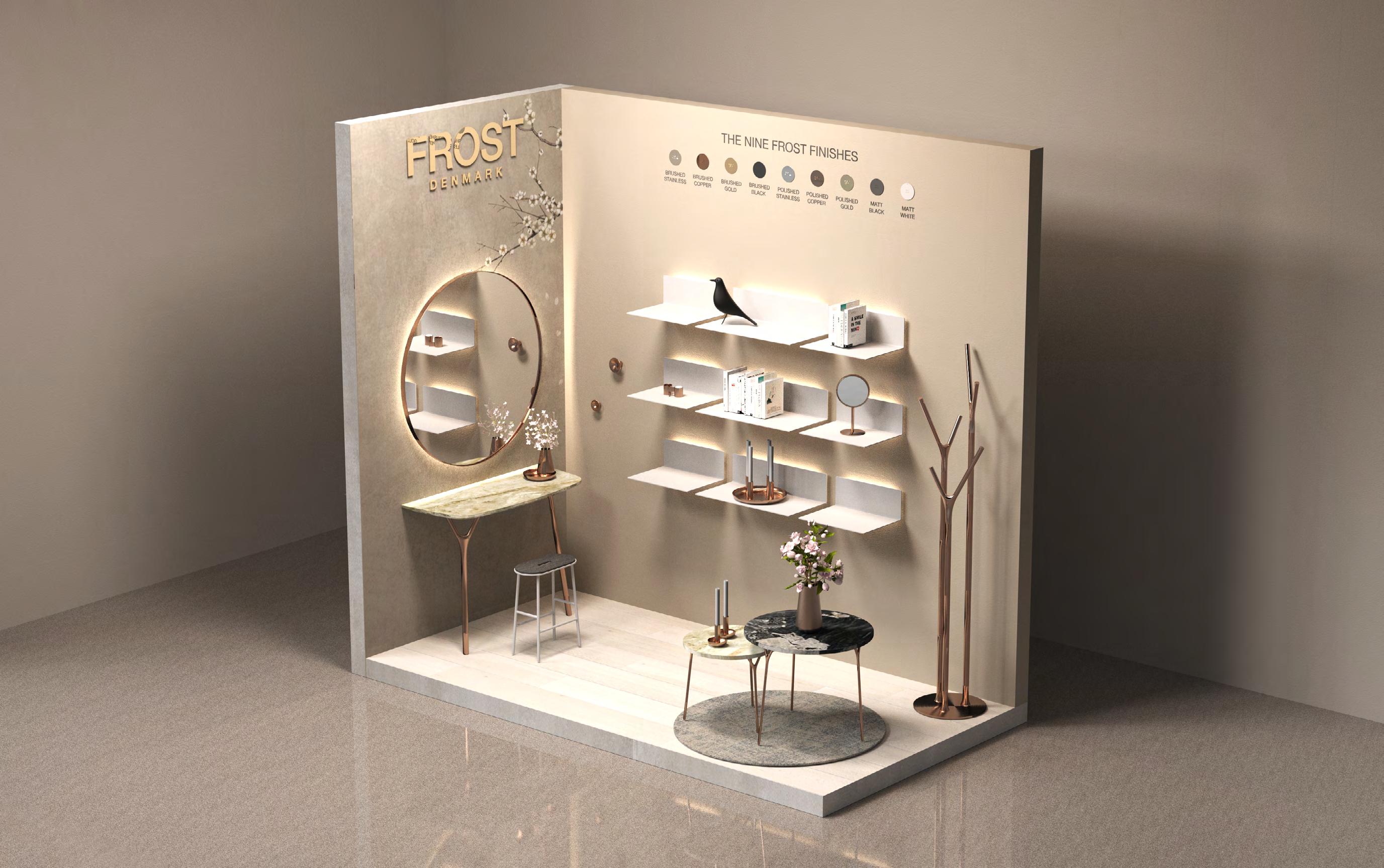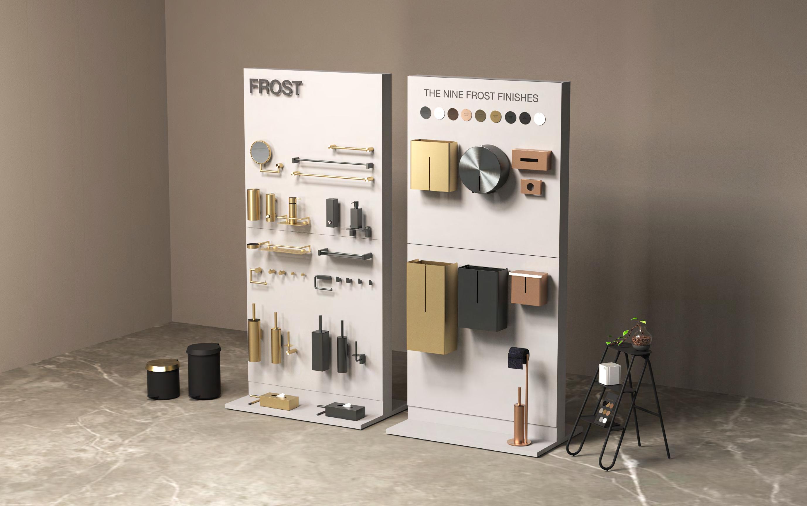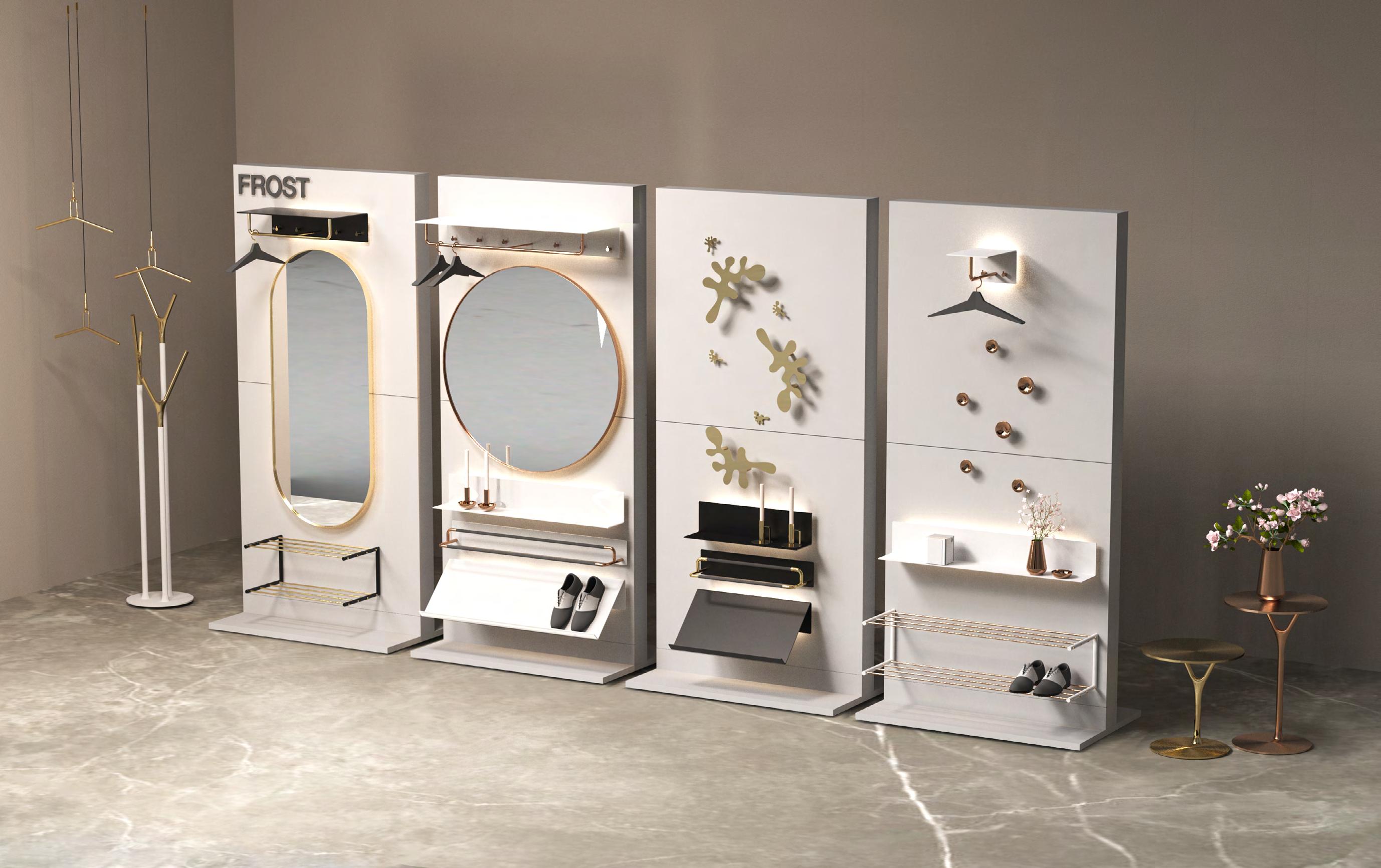 Focus zones for FROST products that need no wall mounting. Use as focal points, window features, or styled sections within your showroom.