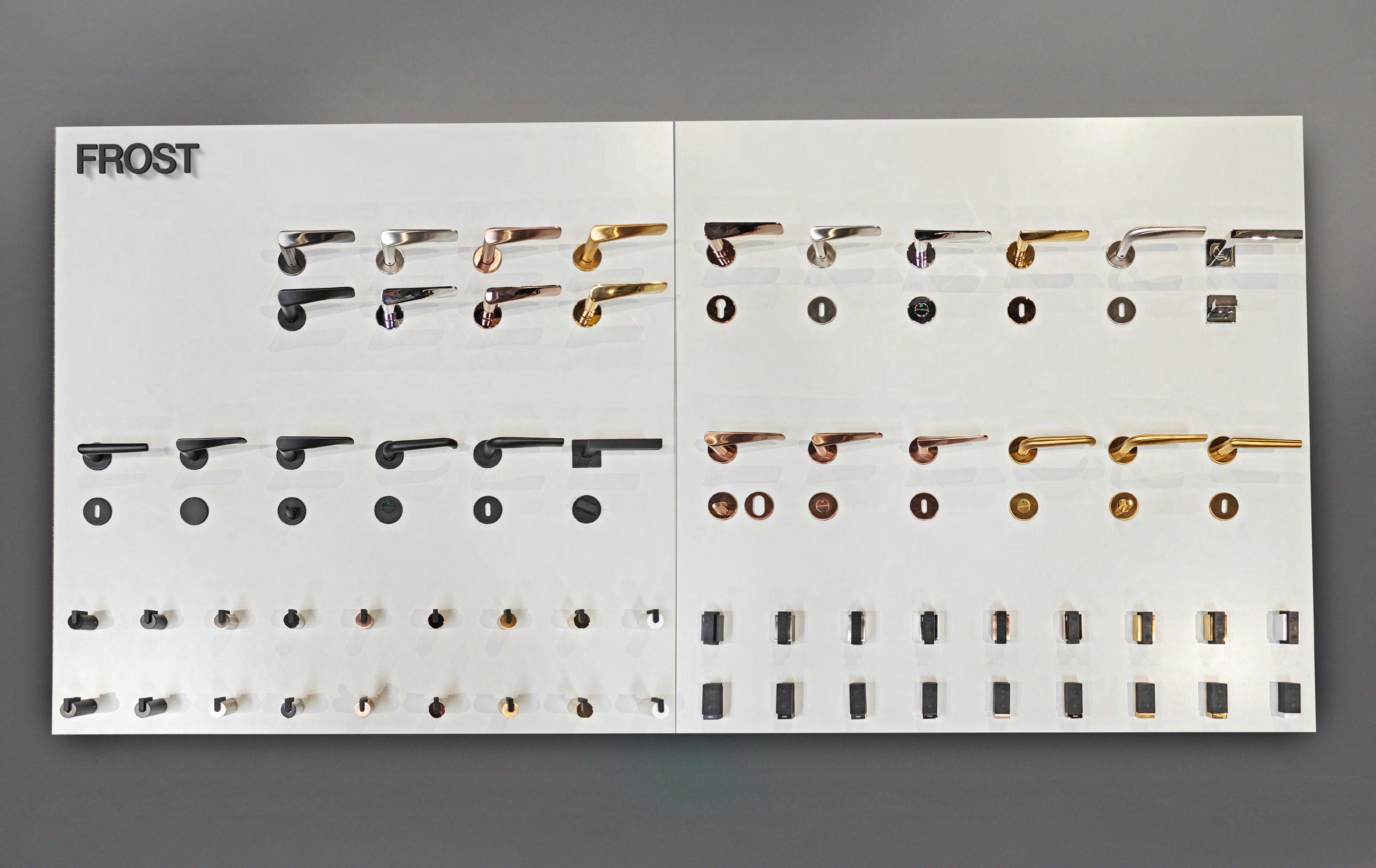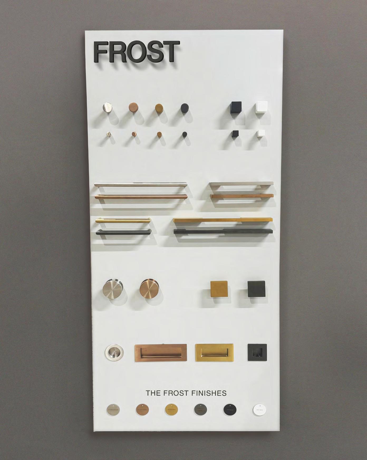 The FROST collection of Architectural Hardware and Furniture Handles offers a modern yet timeless selection, including lever handles, thumb turns, bathroom indicators, escutcheons, push-pull handles, door stops, furniture handles and furniture knobs.