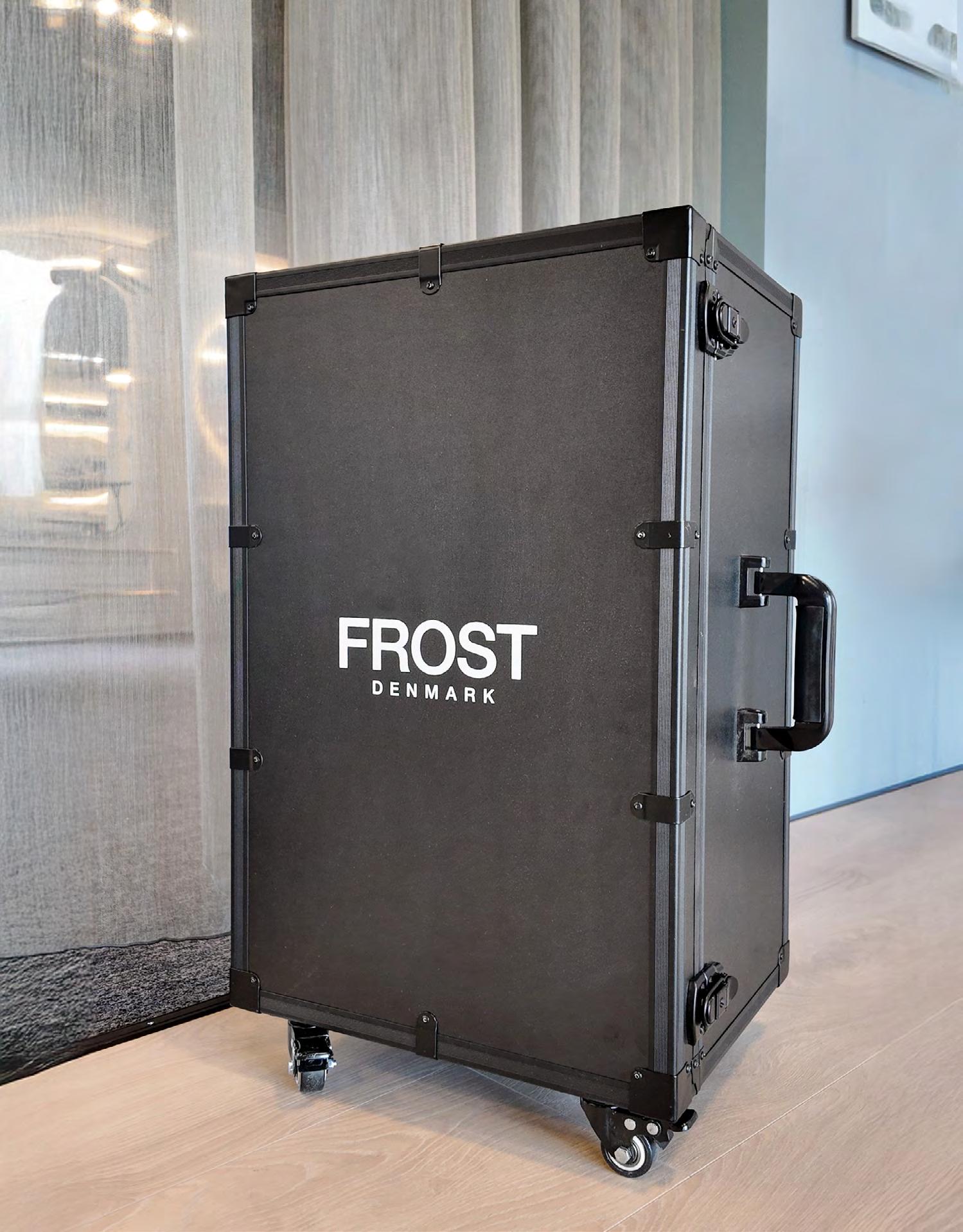 This portable suitcase offers a curated selection of iconic FROST products, allowing you to showcase our design possibilities and provide a full product experience, no matter where you are.