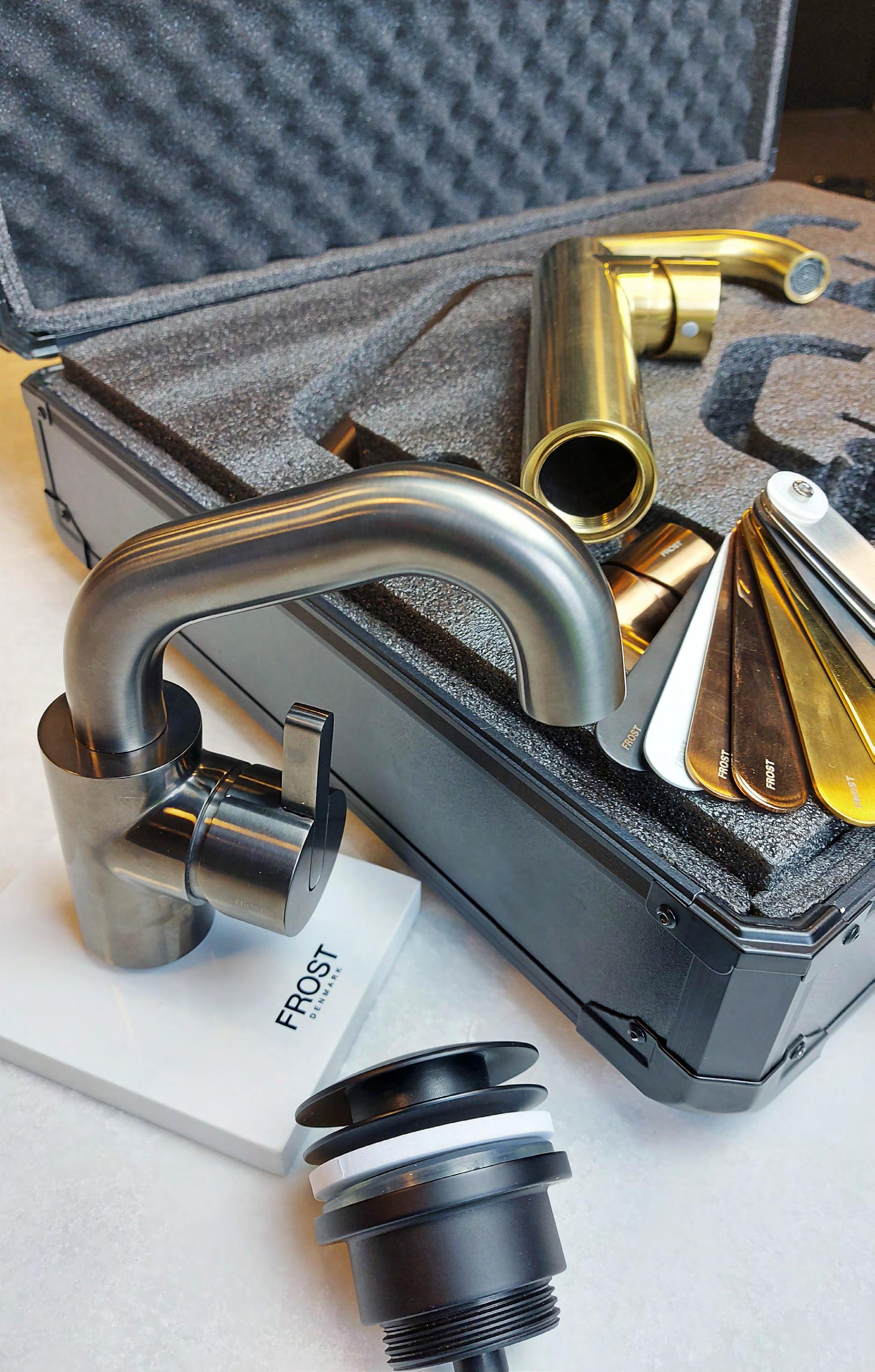 This portable suitcase offers a selection of FROST Mixer Taps, allowing you to showcase the design possibilities and provide a full product experience, no matter where you are. Perfect for client meetings, presentations, and on-site consultations.