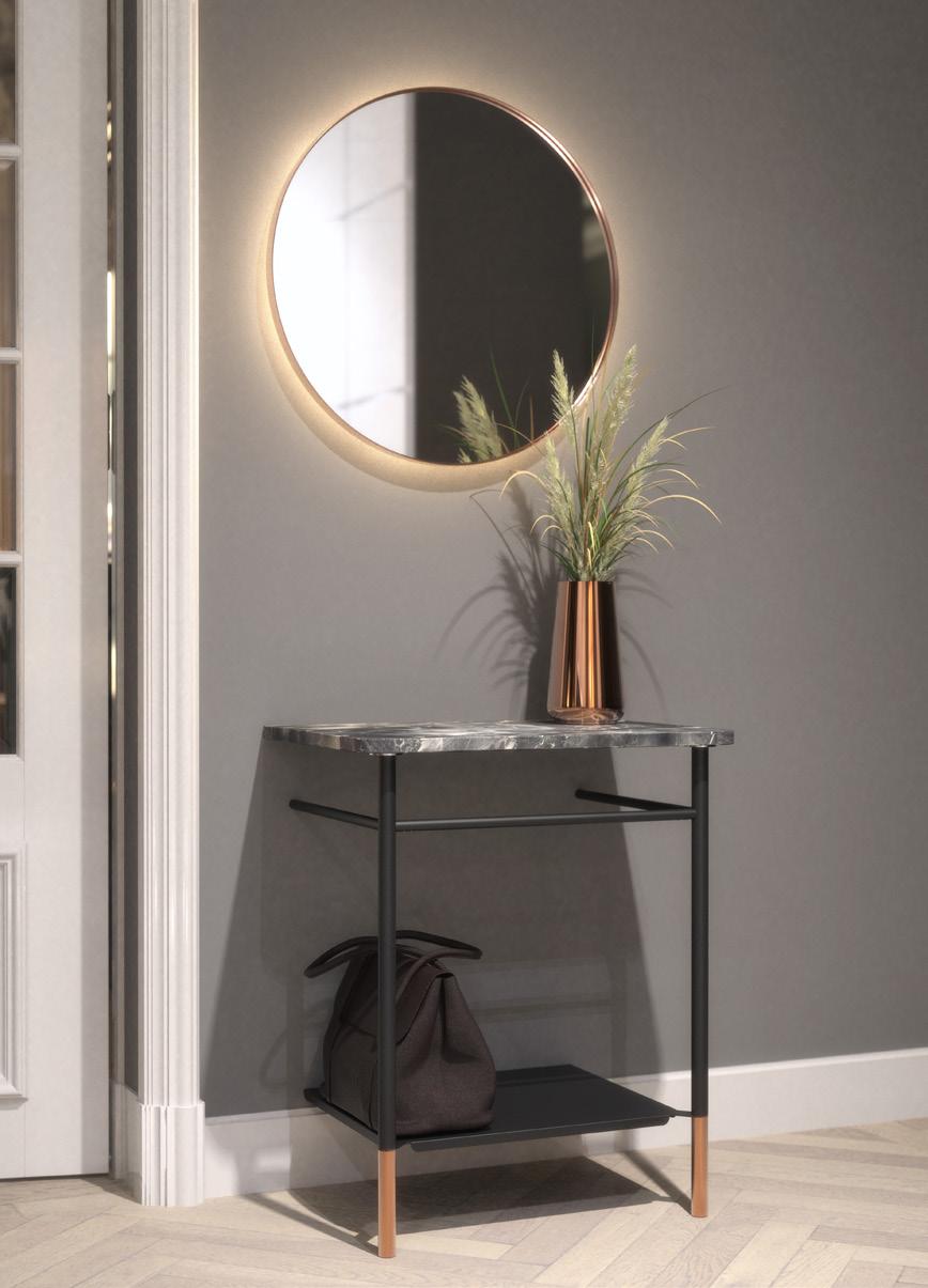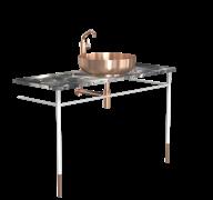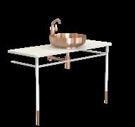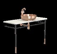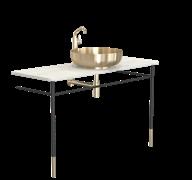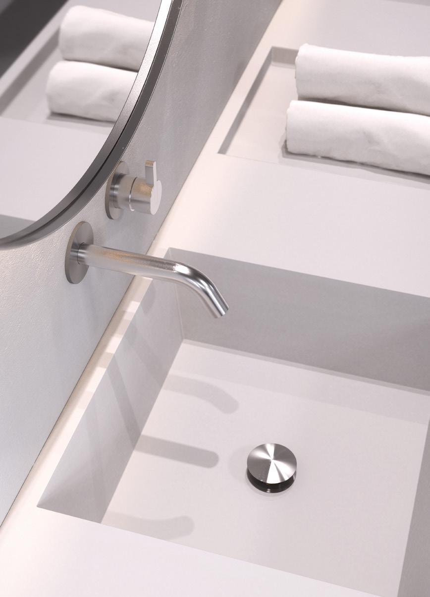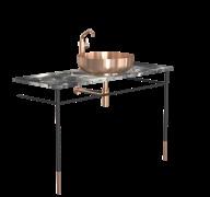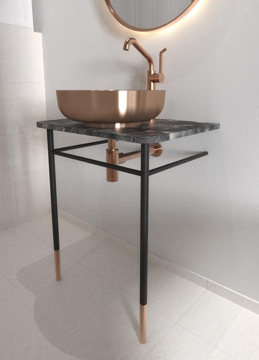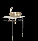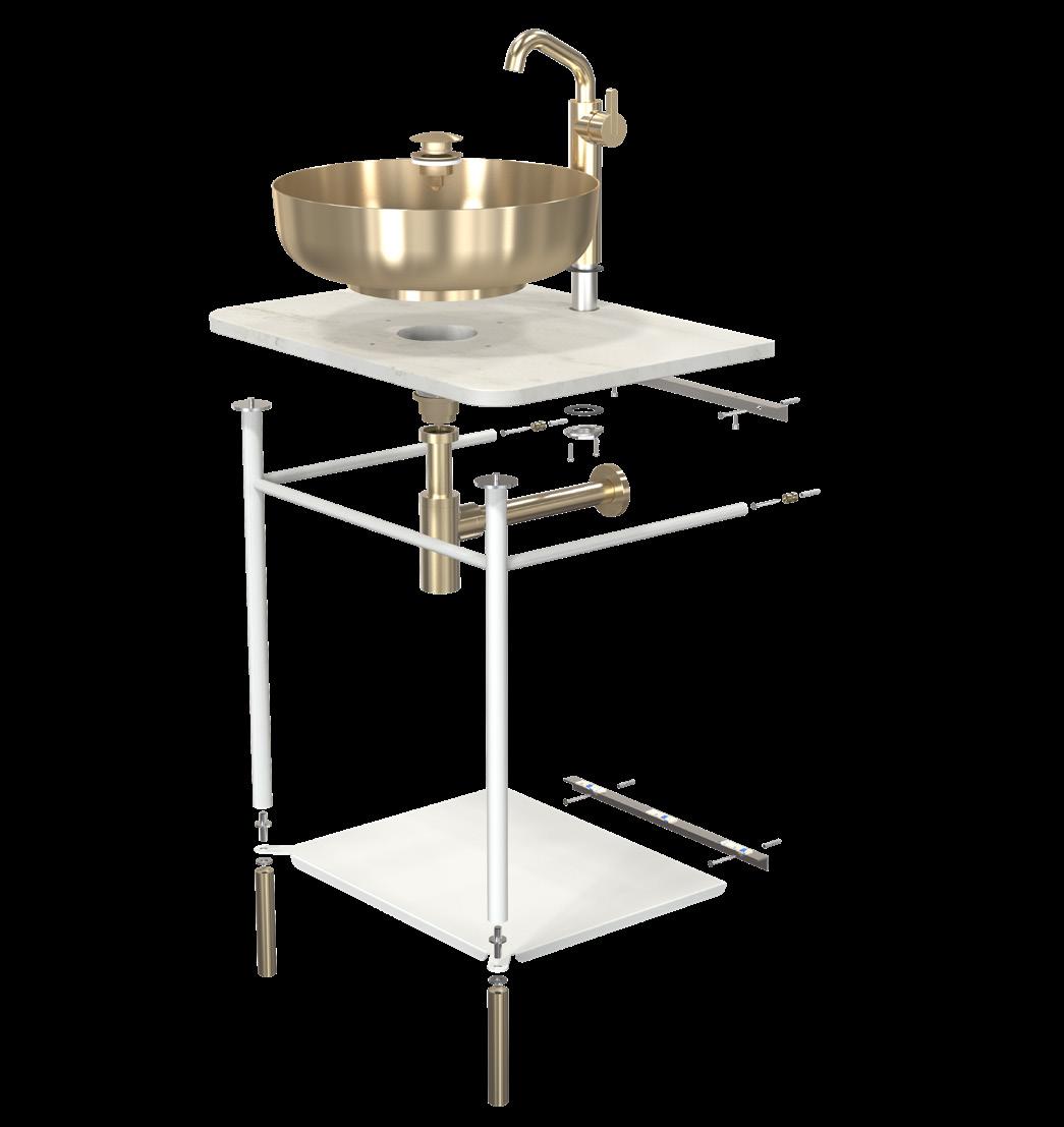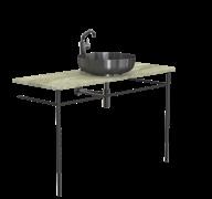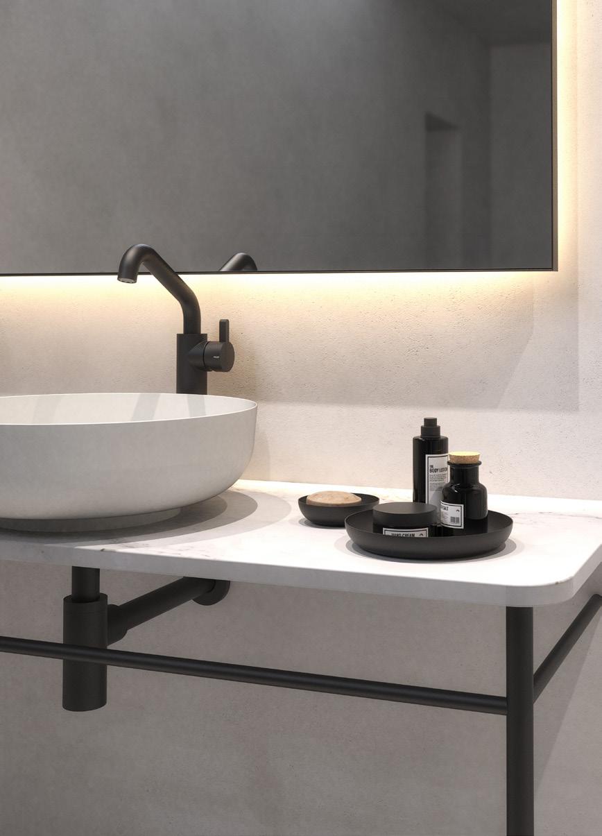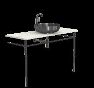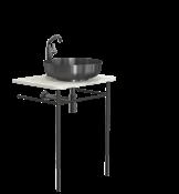 The bathroom furniture & wash basins collection comprises the wash table and console table sets, complete with console legs and a countertop. In addition, the wash table sets include a wash basin, pop-up plug, bottle trap, and basin mixer tap. Selected components may also be purchased separately, allowing for fully bespoke solutions. The refined details are crafted from AISI 304 stainless steel in the characteristic FROST finishes and are complemented by matt black or matt white powder-coated steel. The countertops are crafted from natural stone, each piece unique in character, as no two surfaces are ever identical.