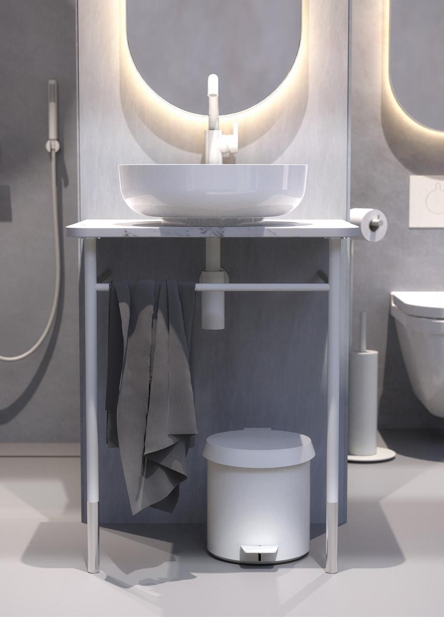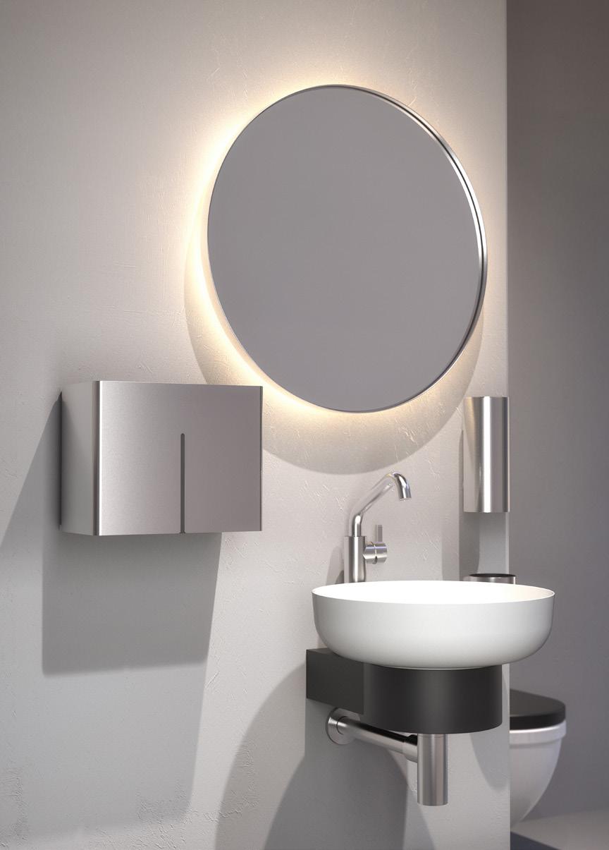 To complete the collection, a curated selection of complementary bathroom products from the extensive NOVA2 Bathroom Accessories & Care Collection is included, alongside UNU shelves, available with or without backlighting. These elements enhance both functionality and visual coherence across private and commercial bathrooms.