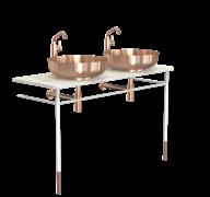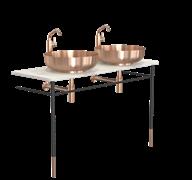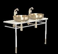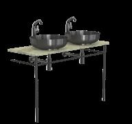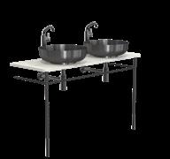 Incl. console legs, countertop, wash basins, basin mixer tap, bottle trap and pop up plug.