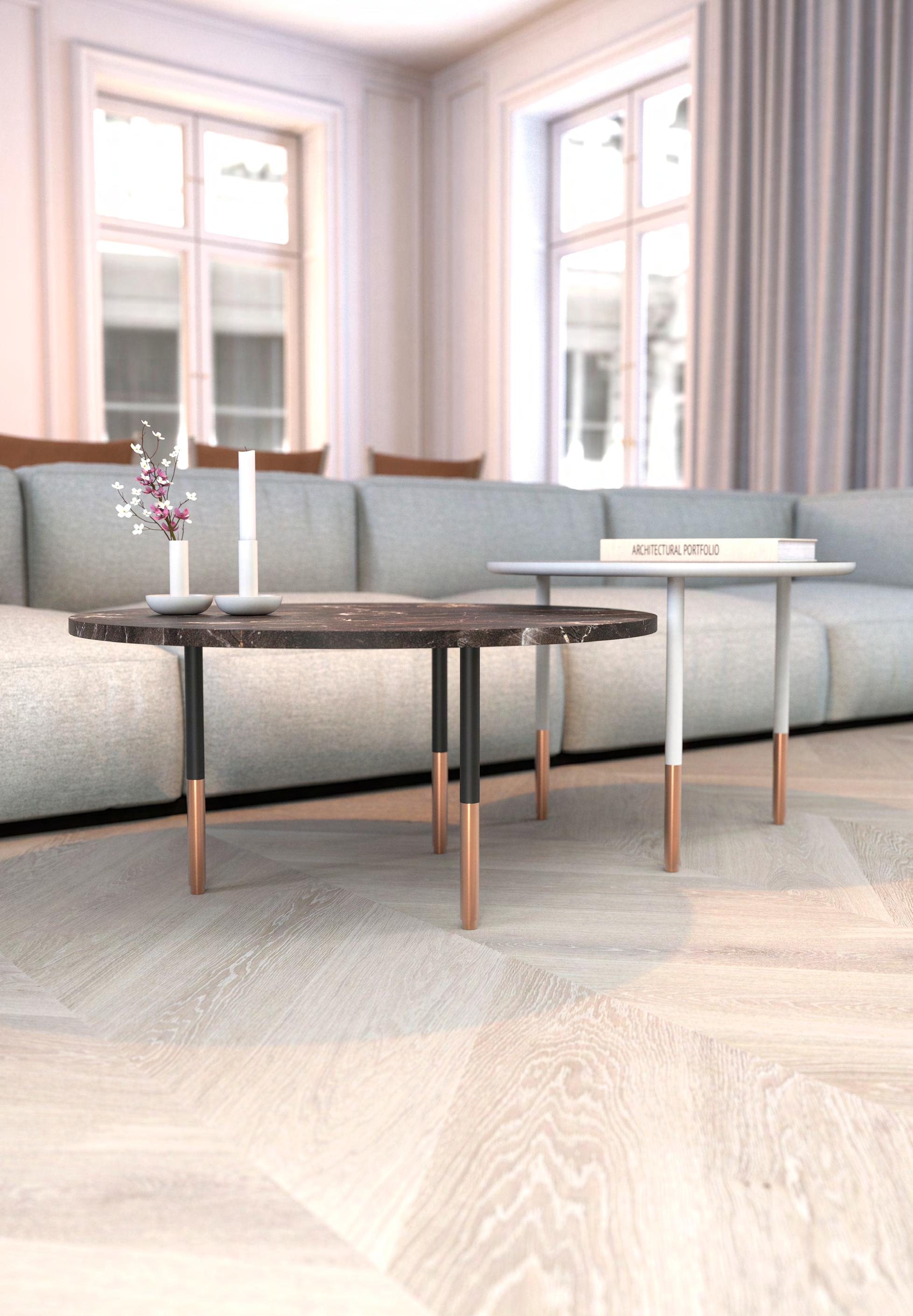 The Table Leg and -top Collection from FROST allows you to create your own dining table, coffee table, high table, desk or cabinet by combining the table legs with a tabletop or cabinet of your own choosing. By changing the tabletop or cabinet to a different size or material, you can create an infinite number of possible compositions and looks using the same table legs. The products are made from steel and stainless steel and are available in a variety of the FROST finishes. The table legs are sold individually so that you can easily purchase the right amount of table legs needed for your unique creation.