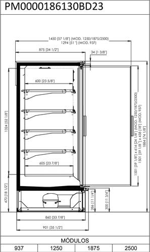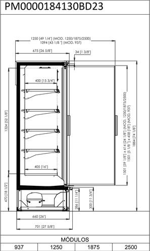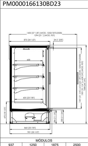 EN ESTA VERSIÓN SL23 HEMOS AÑADIDO LA MODULACIÓN DE 625MM, CON LO QUE OBTENEMOS UN MURAL DE UNA SOLA PUERTA IDEAL PARA TIENDAS PEQUEÑAS PRESENTACIÓN DE PRODUCTOS DE VENTA POR IMPULSO O ALIMENTOS CON FECHA DE CADUCIDAD PRÓXIMA