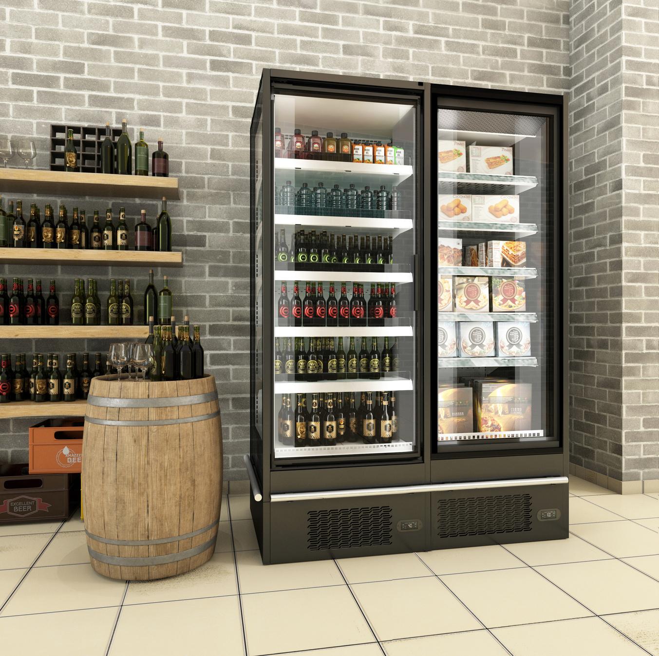 FOLLOWING THE AESTHETIC UNIFICATION AND PROPORTIONS OF REMOTE VERTICAL REFRIGERATED CABINETS, WE PRESENT THE NEW VERSION OF THE EYER SL23 MURAL AND SEMIMURAL MODEL THIS MODEL HAS BECOME ONE OF THE BEST-SELLING PRODUCTS IN OUR RANGE OF AUTONOMOUS PRODUCTS, THANKS TO ITS MULTIPLE COMBINATIONS OF HEIGHTS, MODULATIONS AND DEPTHS IT CAN ADAPT PERFECTLY TO BOTH SMALL ESTABLISHMENTS OF PROXIMITY, AS WELL AS LARGE AND MEDIUM SURFACES